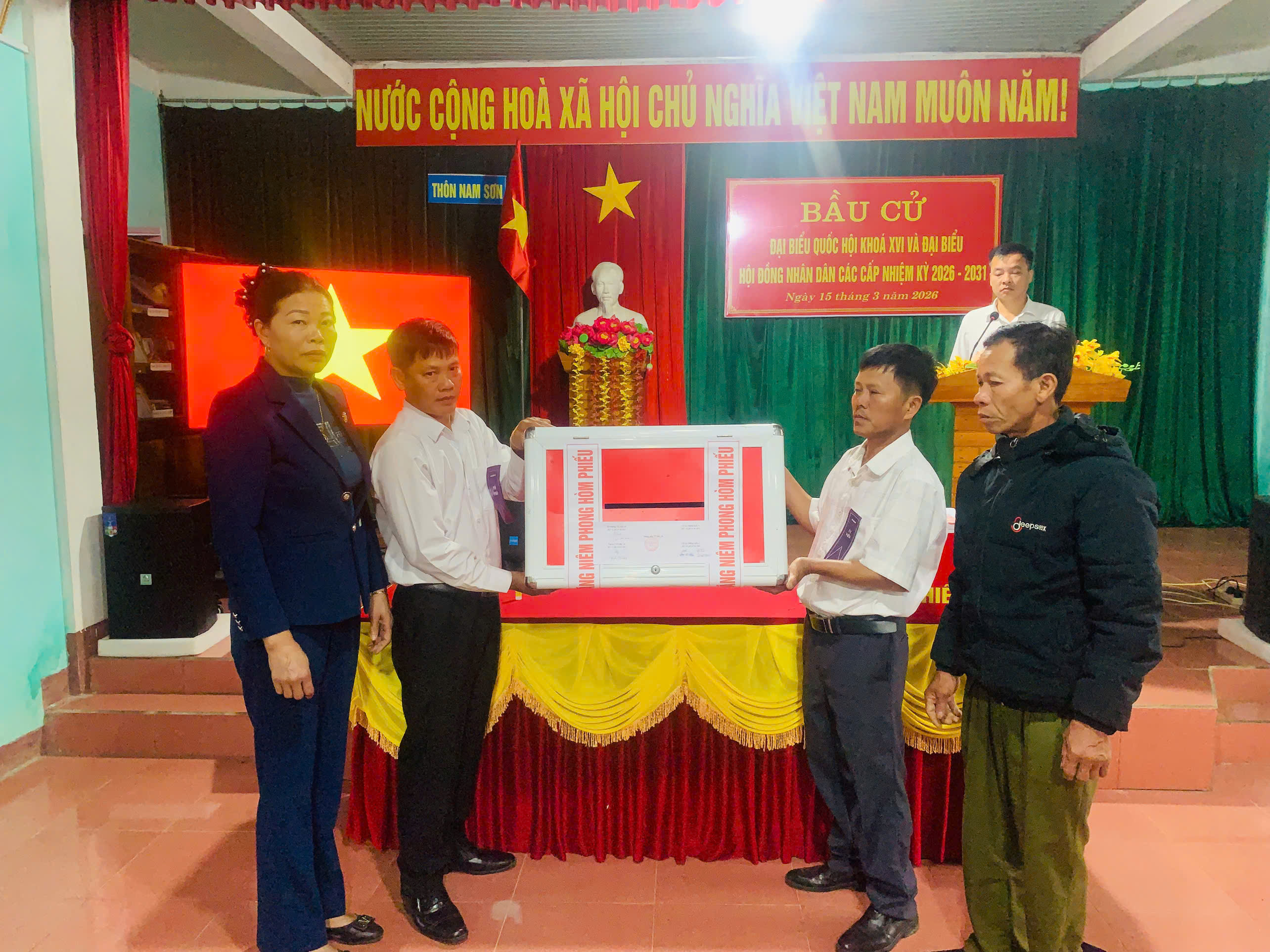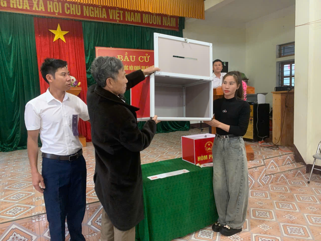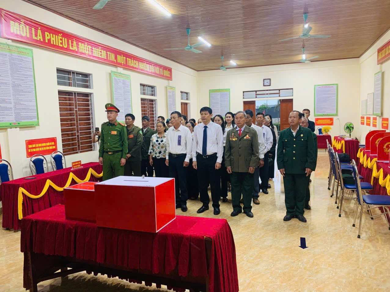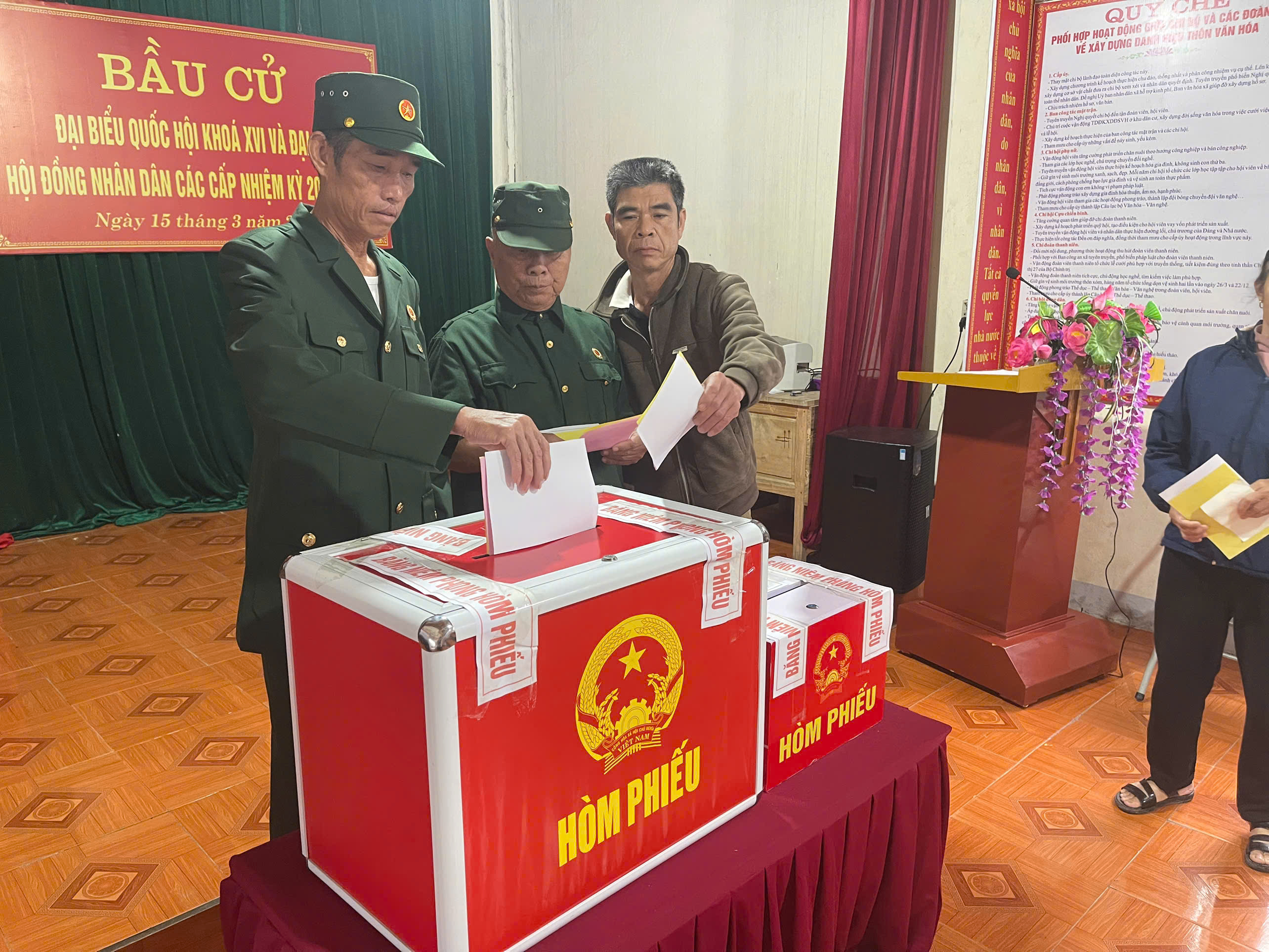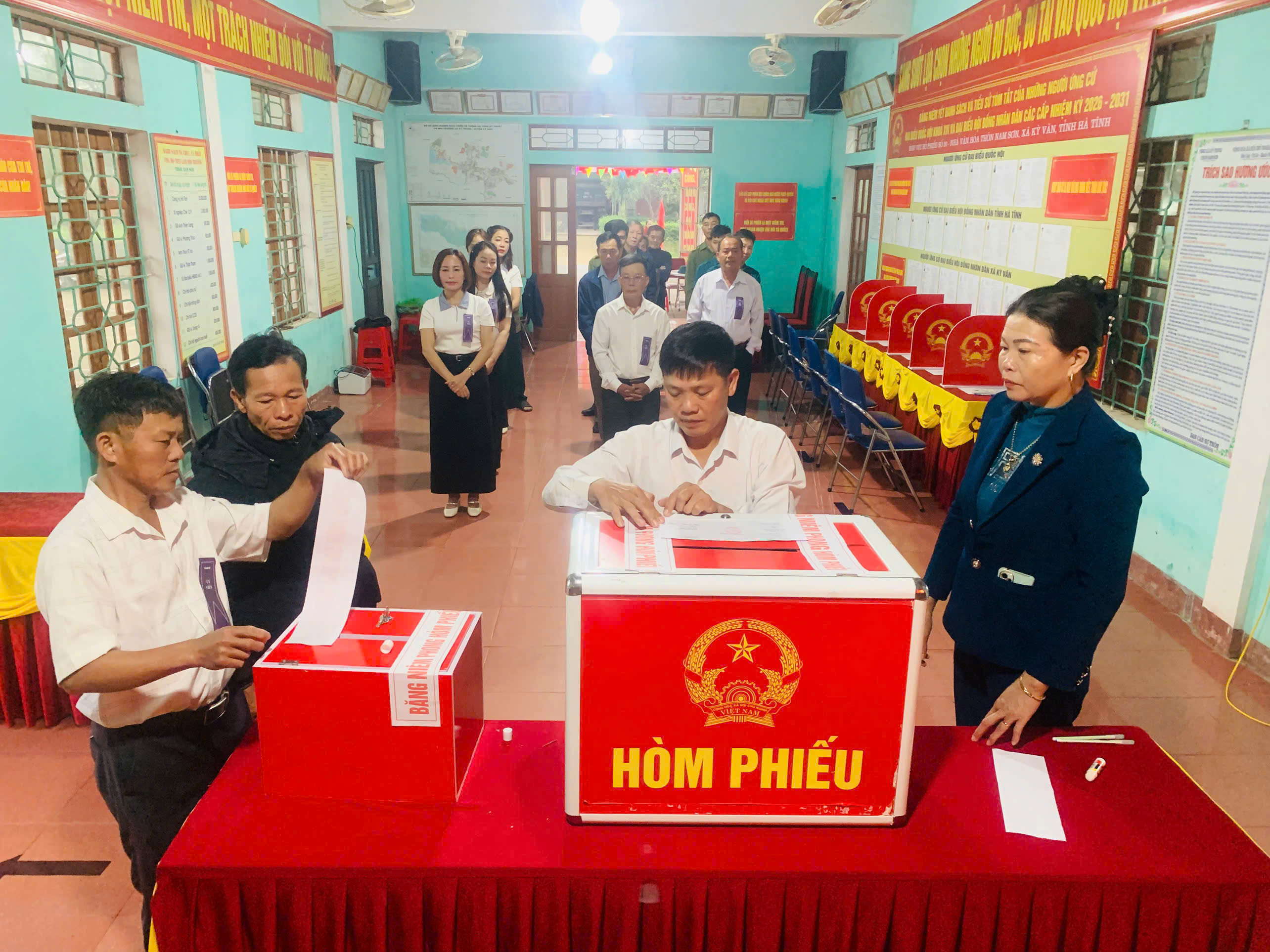 Những lá phiếu đầu tiên được cử tri trong toàn xã bỏ vào thùng phiếu