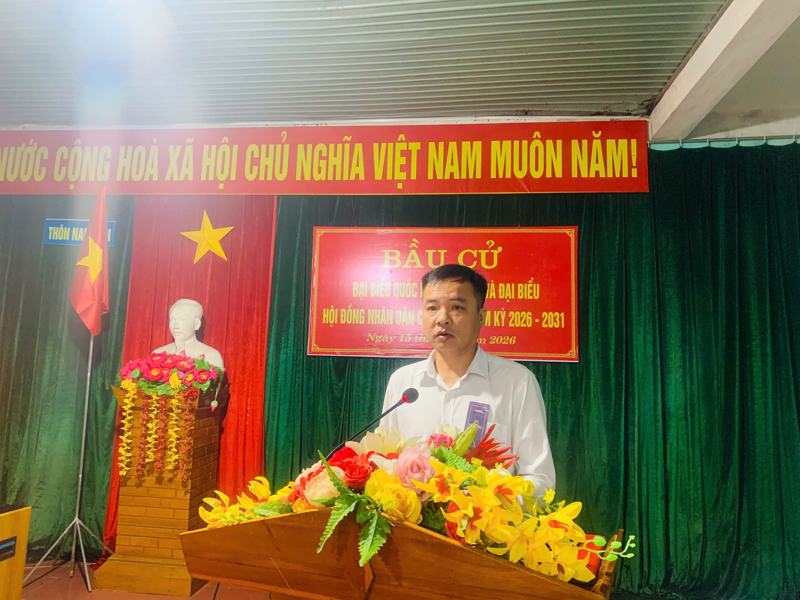 Đồng chí Nguyễn Ngọc Hoạch, Bí thư Đảng ủy, Chủ tịch HĐND xã tham dự khai mạc bầu cử