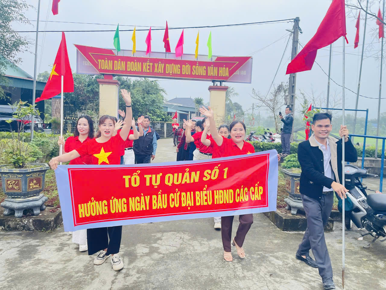 Ngay từ sáng sớm, các tổ liên gia cùng nhau đi bầu cử đông vui như ngày hội.