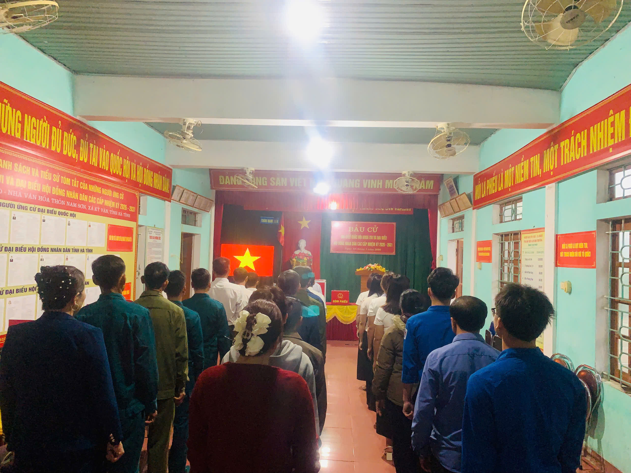 Thực hiện quy trình bầu cử, bắt đầu từ sáng sớm ngày 15/3/2026, các điểm bỏ phiếu trên địa bàn xã đã tổ chức khai mạc Bầu cử đại biểu Quốc hội và đại biểu HĐND các cấp nhiệm kỳ 2026-2031. Để đảm bảo thời gian bỏ phiếu của cử tri, bắt đầu từ 6 giờ 30 phút, 20/20 tổ bầu cử đã tổ chức Lễ khai mạc một cách trang nghiêm, đúng quy định.