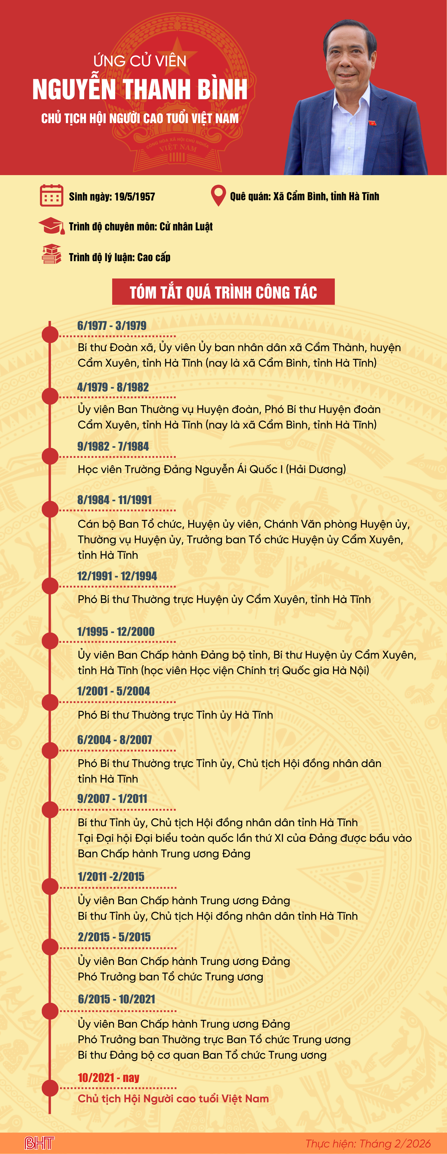 Với sự quan tâm ủng hộ, Hội đồng bầu cử Quốc gia, Ủy ban Trung ương Mặt trận Tổ quốc Việt Nam và Trung ương Hội người cao tuổi Việt Nam đã tín nhiệm giới thiệu tôi, đại diện cho gần 17 triệu người cao tuổi Việt Nam tham gia ứng cử ĐBQH khóa XVI tại quê hương Hà Tĩnh, nơi tôi được sinh ra, lớn lên, học tập, rèn luyện và trưởng thành.