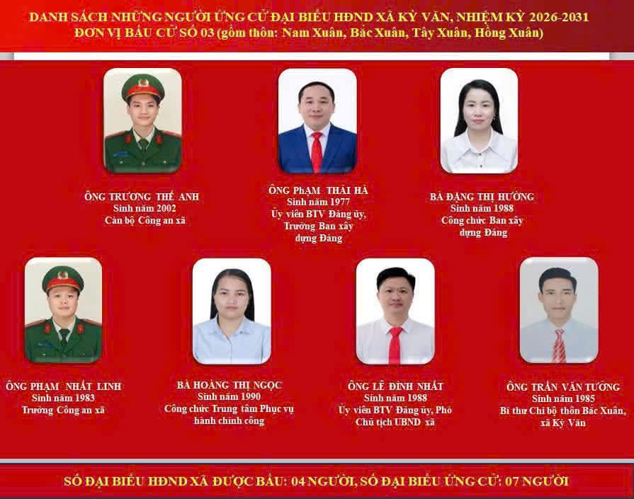 Với tinh thần đoàn kết, dân chủ và trách nhiệm, cán bộ, đảng viên và Nhân dân xã Kỳ Văn quyết tâm tổ chức thành công cuộc bầu cử đại biểu Quốc hội khóa XVI và đại biểu HĐND các cấp nhiệm kỳ 2026–2031, để ngày bầu cử thực sự trở thành Ngày hội lớn của toàn dân.