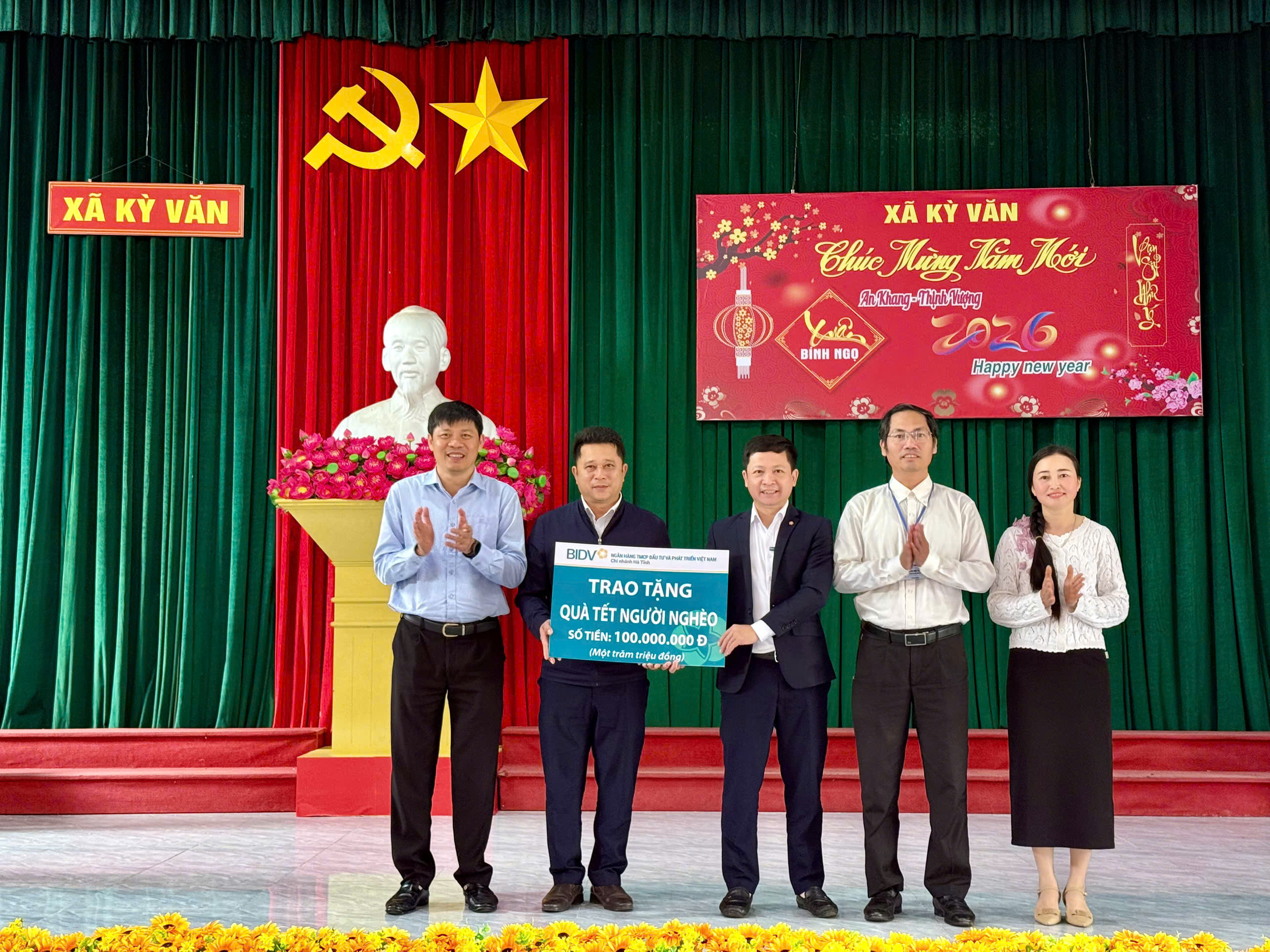 Ngân hàng TMCP Đầu tư và phát triển Việt Nam (BIDV) PGD chi nhánh Kỳ Đồng đã trao tặng số tiền 100.000.000đ nhằm chung tay hỗ trợ công tác chăm lo Tết cho người nghèo, các đối tượng chính sách và những hoàn cảnh khó khăn trên địa bàn xã.