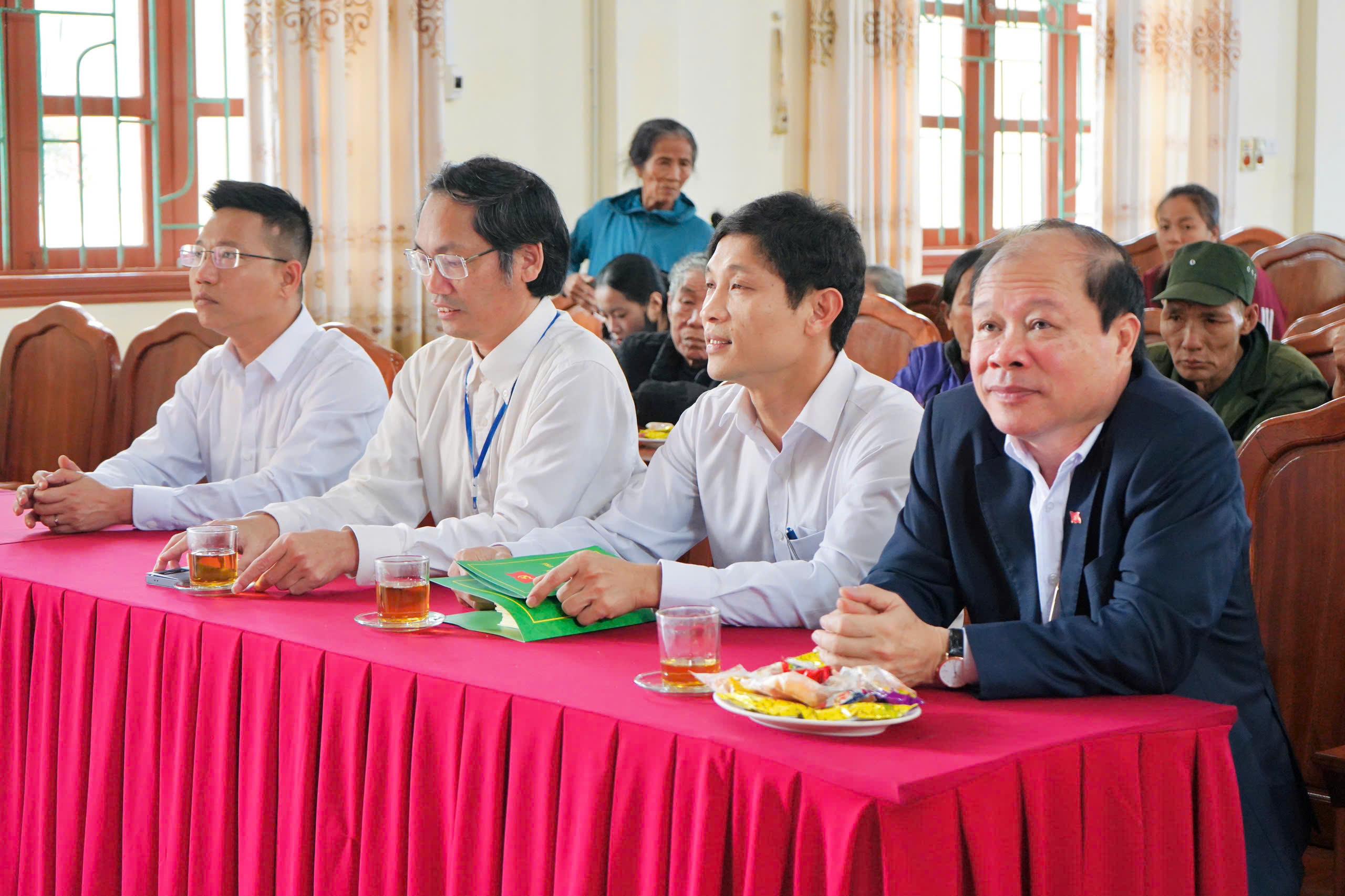 Đại diện lãnh đạo xã tiếp nhận quà từ đồng chí Nguyễn Hoài Sơn, Uỷ viên BCH Đảng bộ Tỉnh Hà Tĩnh, Bí thư Đảng uỷ, Chủ tịch HĐND Phường Sông Trí