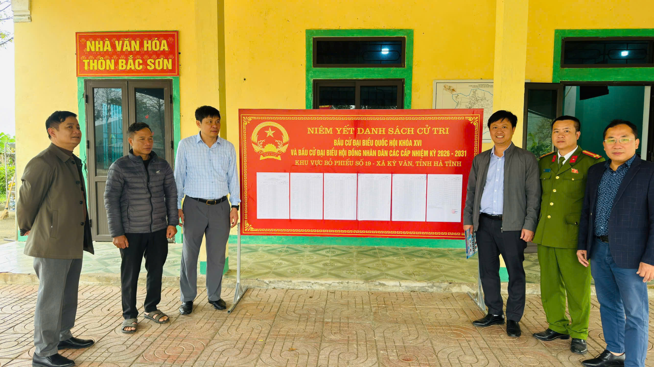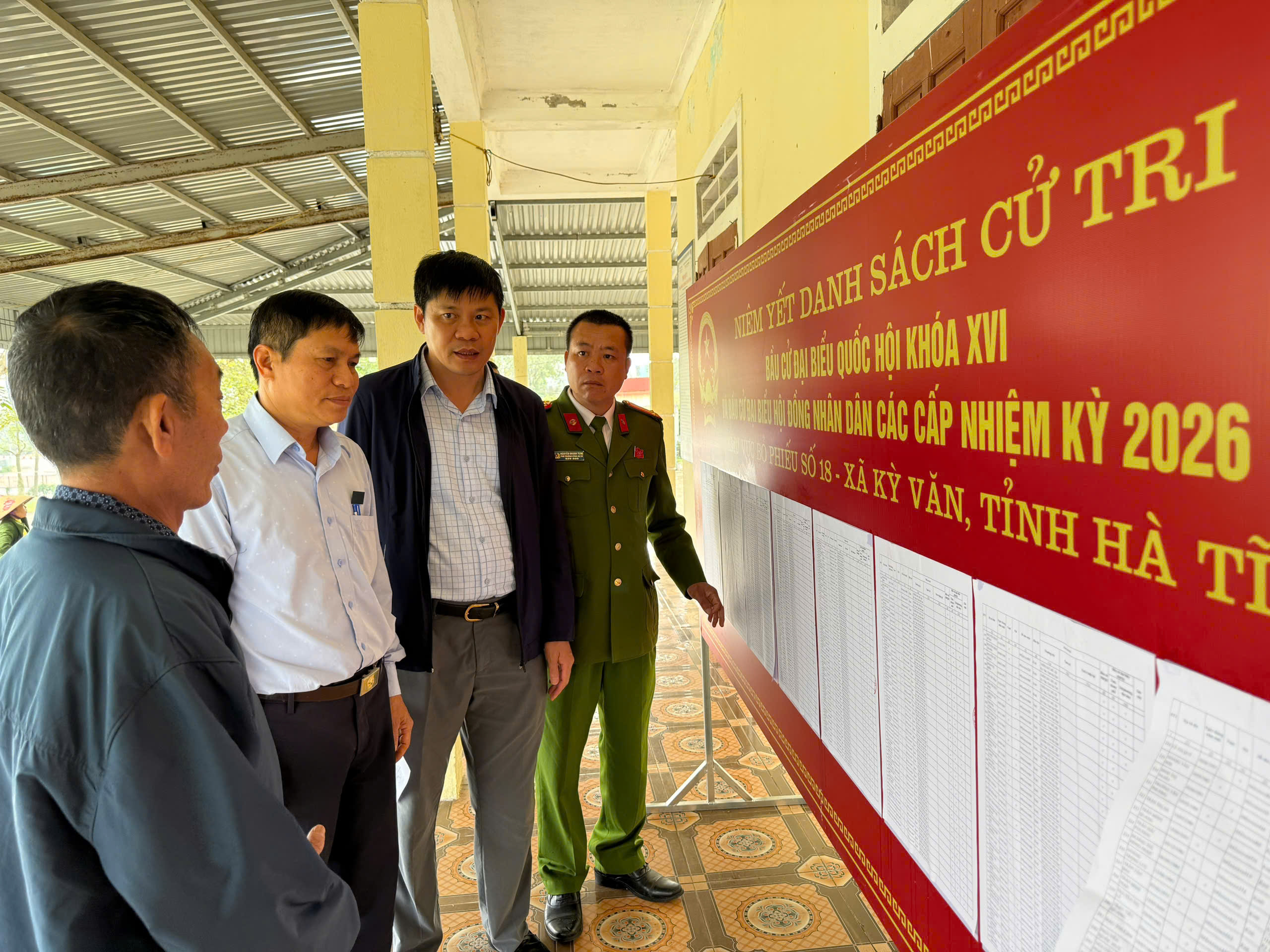 Cùng tham gia đoàn kiểm tra có các đồng chí thành viên Ủy ban bầu cử xã, các đồng chí Tổ trưởng tổ bầu cử đã trực tiếp đi kiểm tra công tác niêm yết danh sách cử tri tại các thôn Nam Sơn, Bắc Sơn, Đất Đỏ và Trung Sơn. Tại các điểm niêm yết có các đồng chí Bí thư chi bộ, Thôn trưởng các thôn.