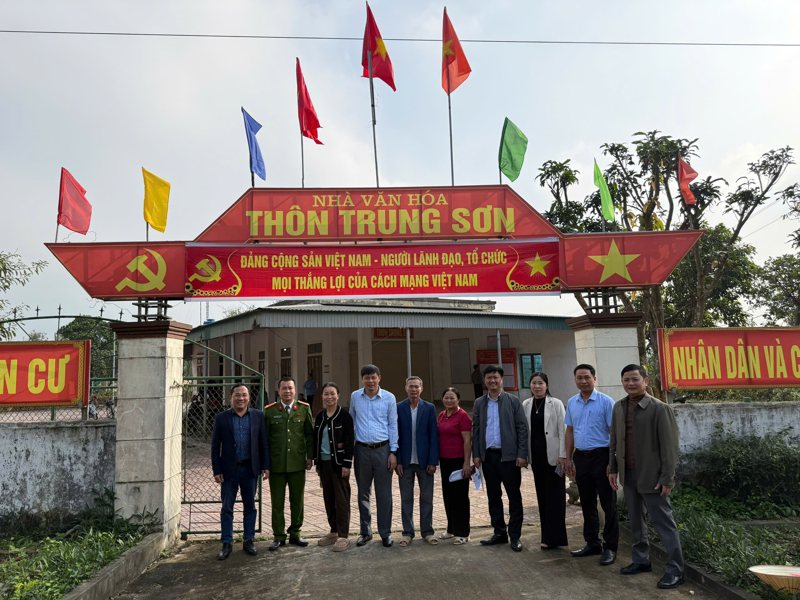 Đoàn kiểm tra tại điểm niêm yết thôn Trung Sơn