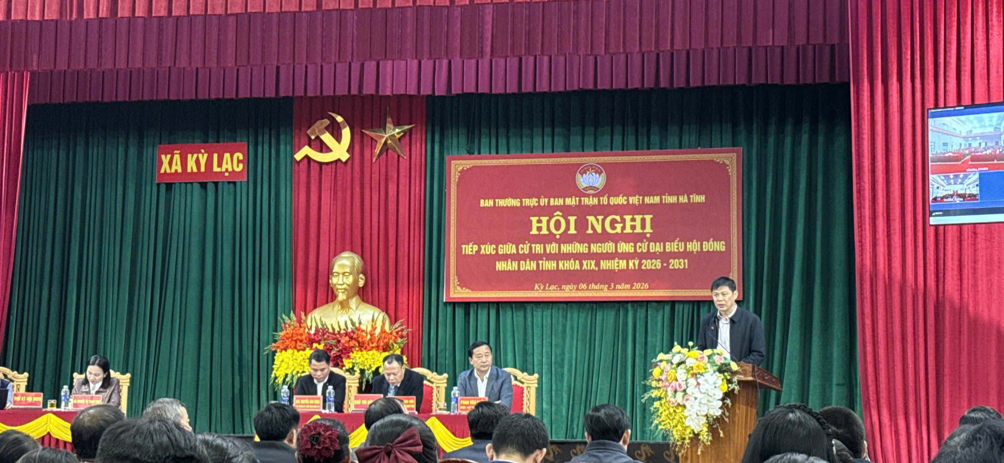 Hội nghị tiếp xúc cử tri với những người ứng cử đại biểu HĐND tỉnh, nhiệm kỳ 2026 – 2031 tại đơn vị bầu cử số 02 tỉnh Hà Tĩnh đã diễn ra vào sáng 06/3/2026 bằng hình thức trực tiếp kết nối trực tuyến từ điểm cầu chính tại hội trường UBND xã Kỳ Lạc, tỉnh Hà Tĩnh.