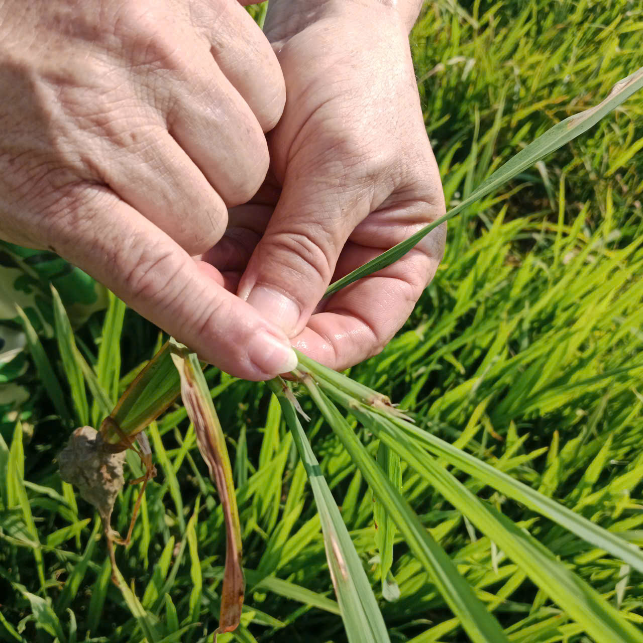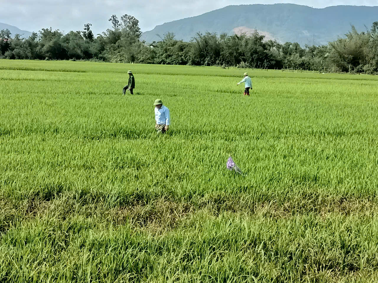 Cụ thể, bệnh khô vằn xuất hiện rải rác với mức độ nhẹ, chủ yếu ở những diện tích gieo cấy dày, độ ẩm cao. Đáng lưu ý, bệnh đạo ôn phát sinh cục bộ tại một số xứ đồng, với diện tích nhiễm nặng khoảng 0,1–0,2 ha (tại thôn Nam Mỹ Lợi). Đây là đối tượng bệnh nguy hiểm, có khả năng lây lan nhanh nếu không được phát hiện và xử lý kịp thời.