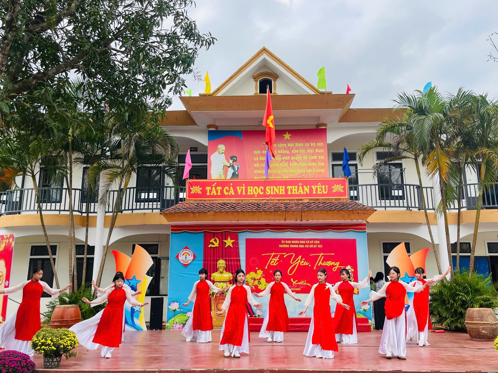 Các tiết mục văn nghệ do các em học sinh biểu diễn mang đến không khí rộn ràng háo hức chào đón mùa xuân mới