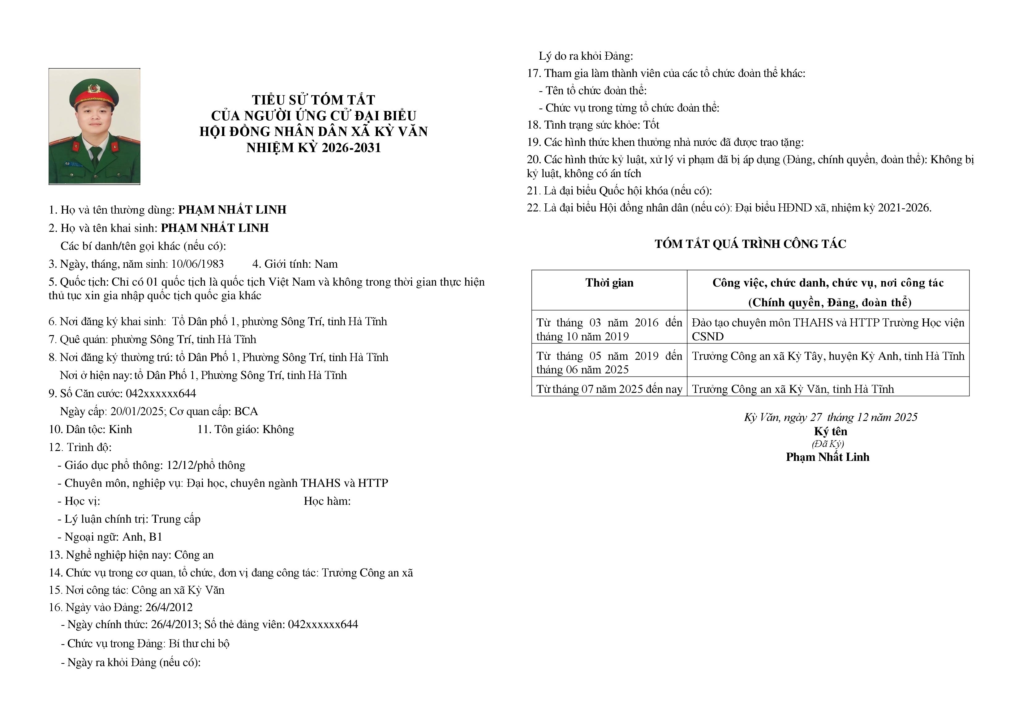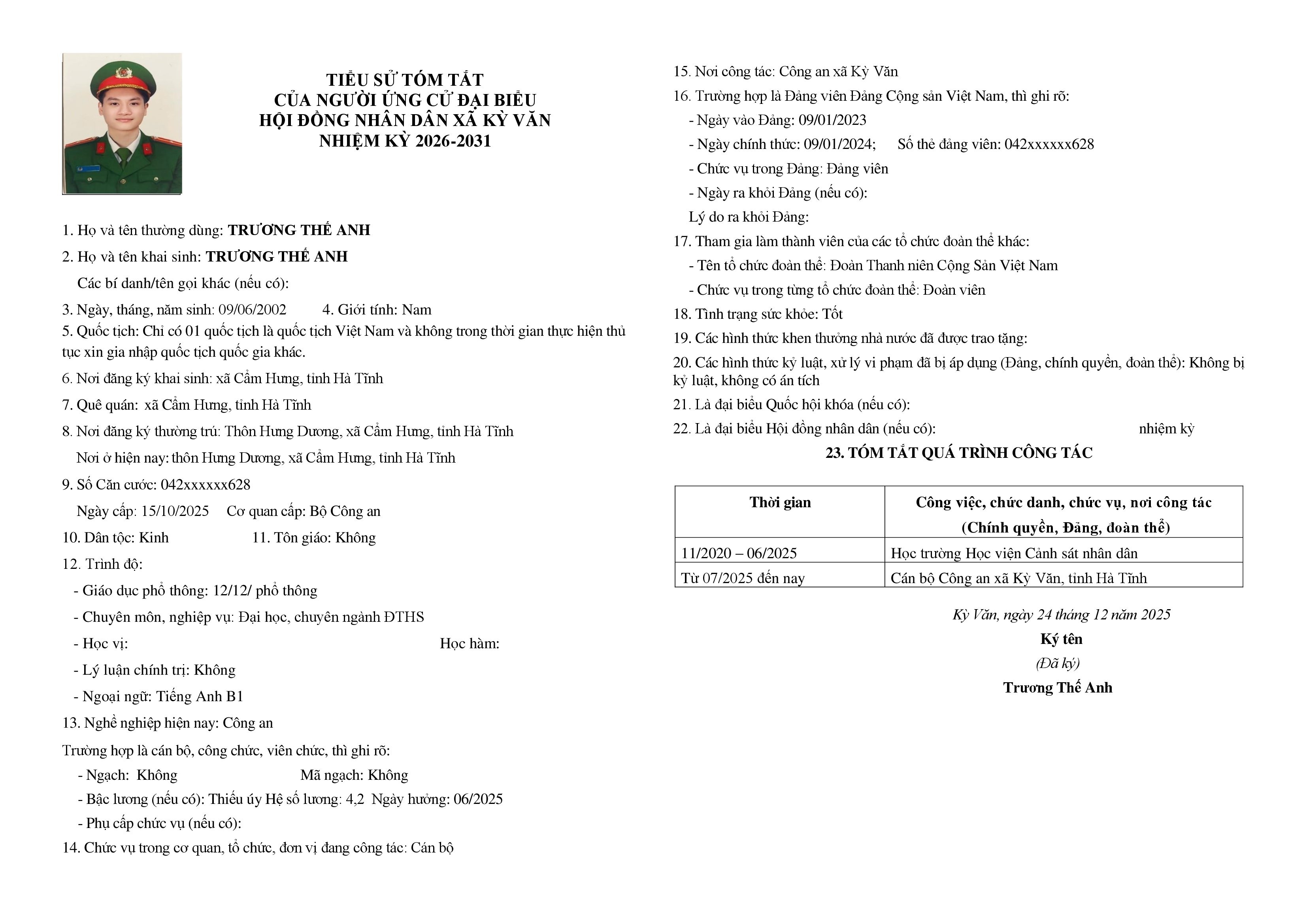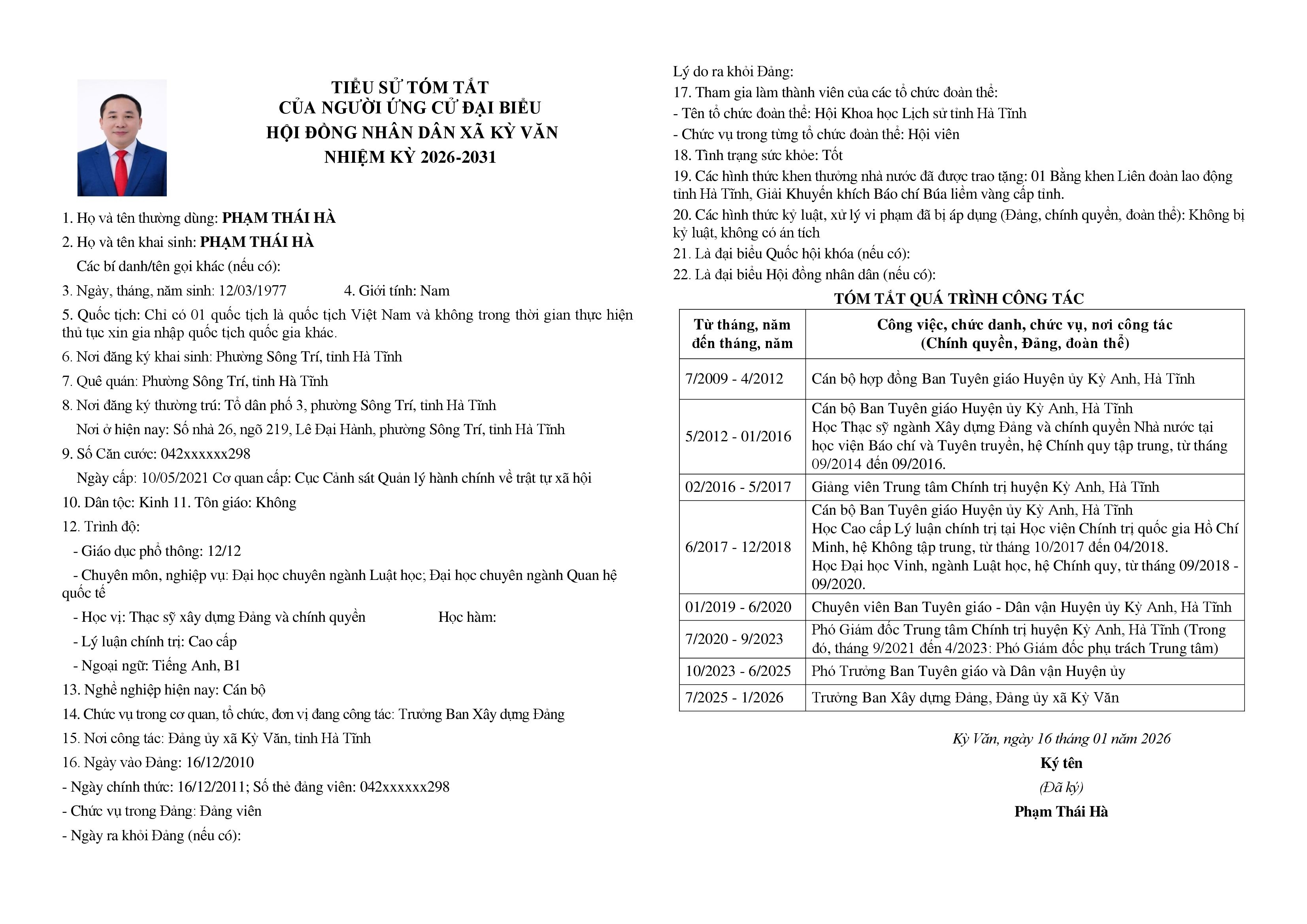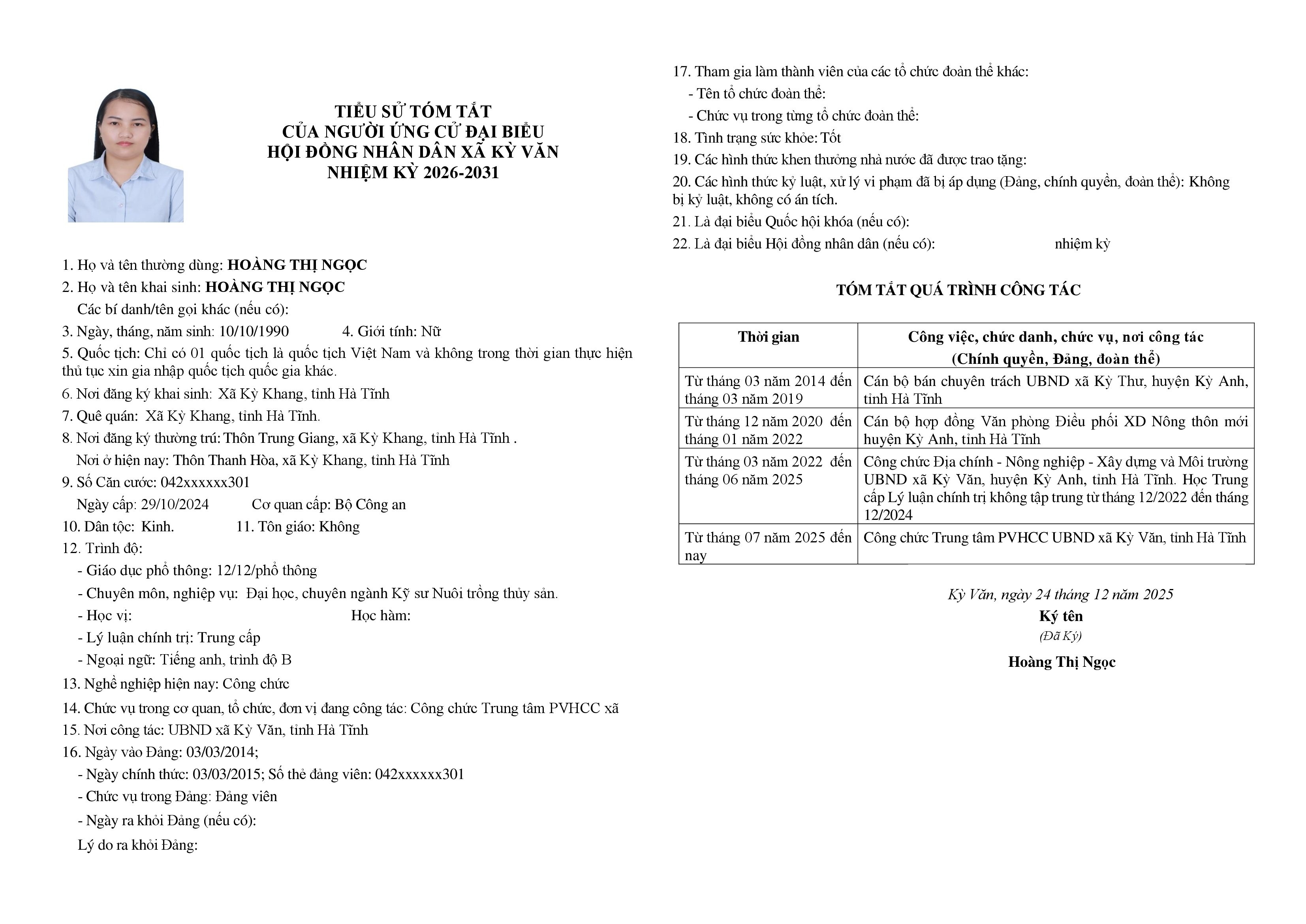 Tiểu sử tóm tắt những người ứng cử đại biểu HĐND xã Kỳ Văn nhiệm kỳ 2026-2031 tại đơn vị bầu cử số 03