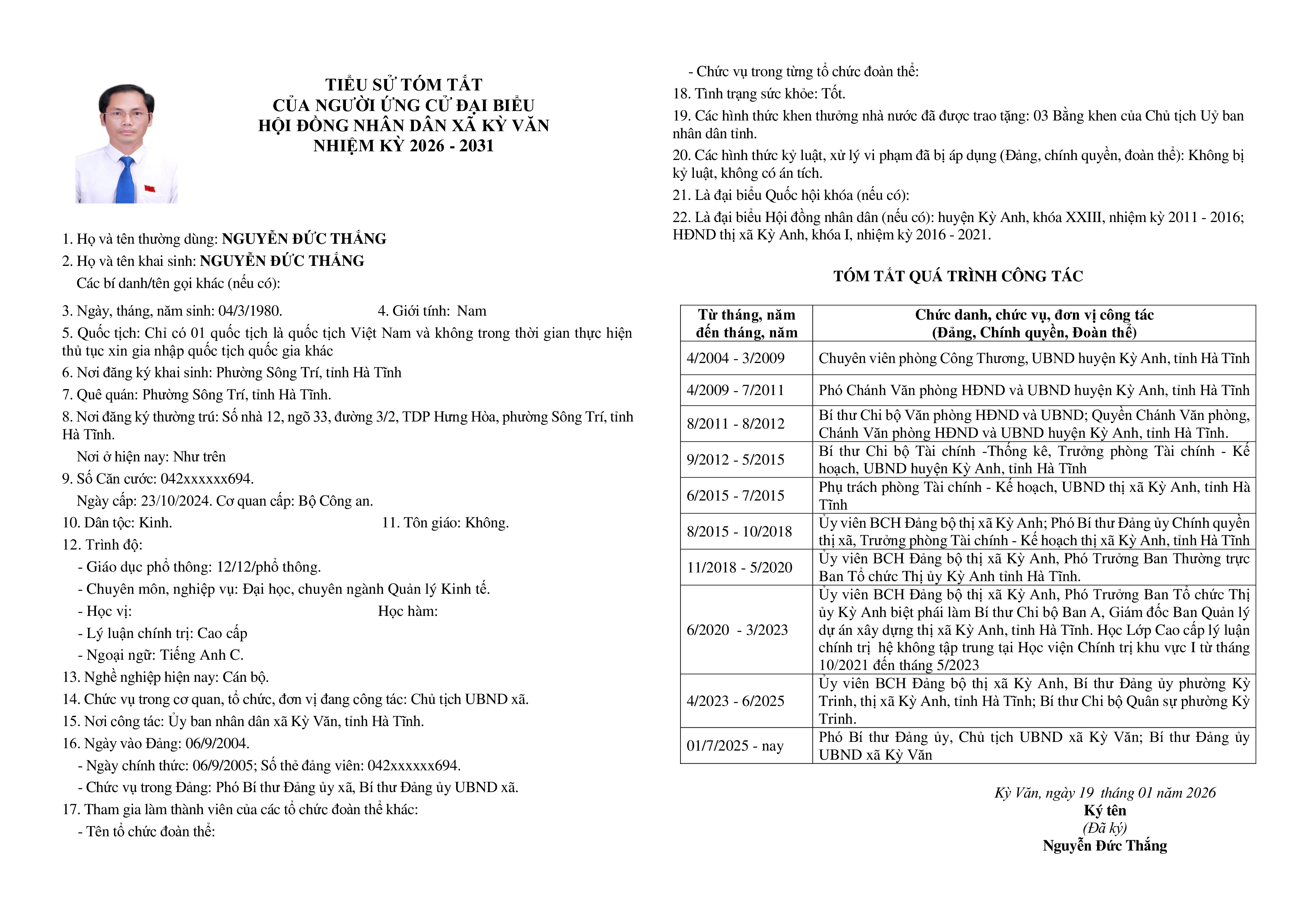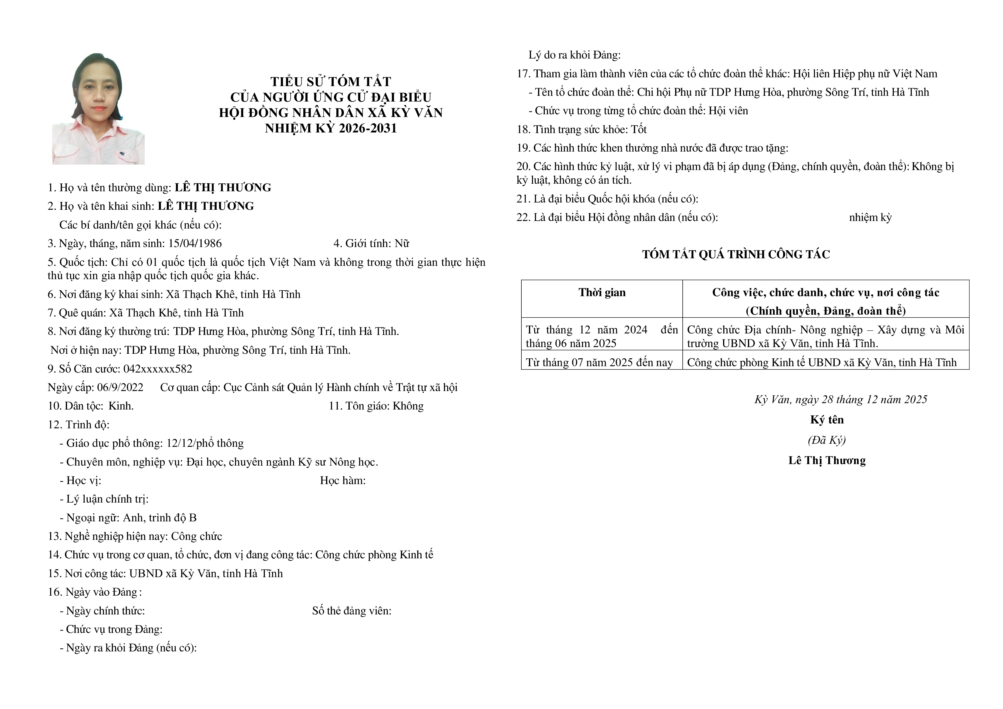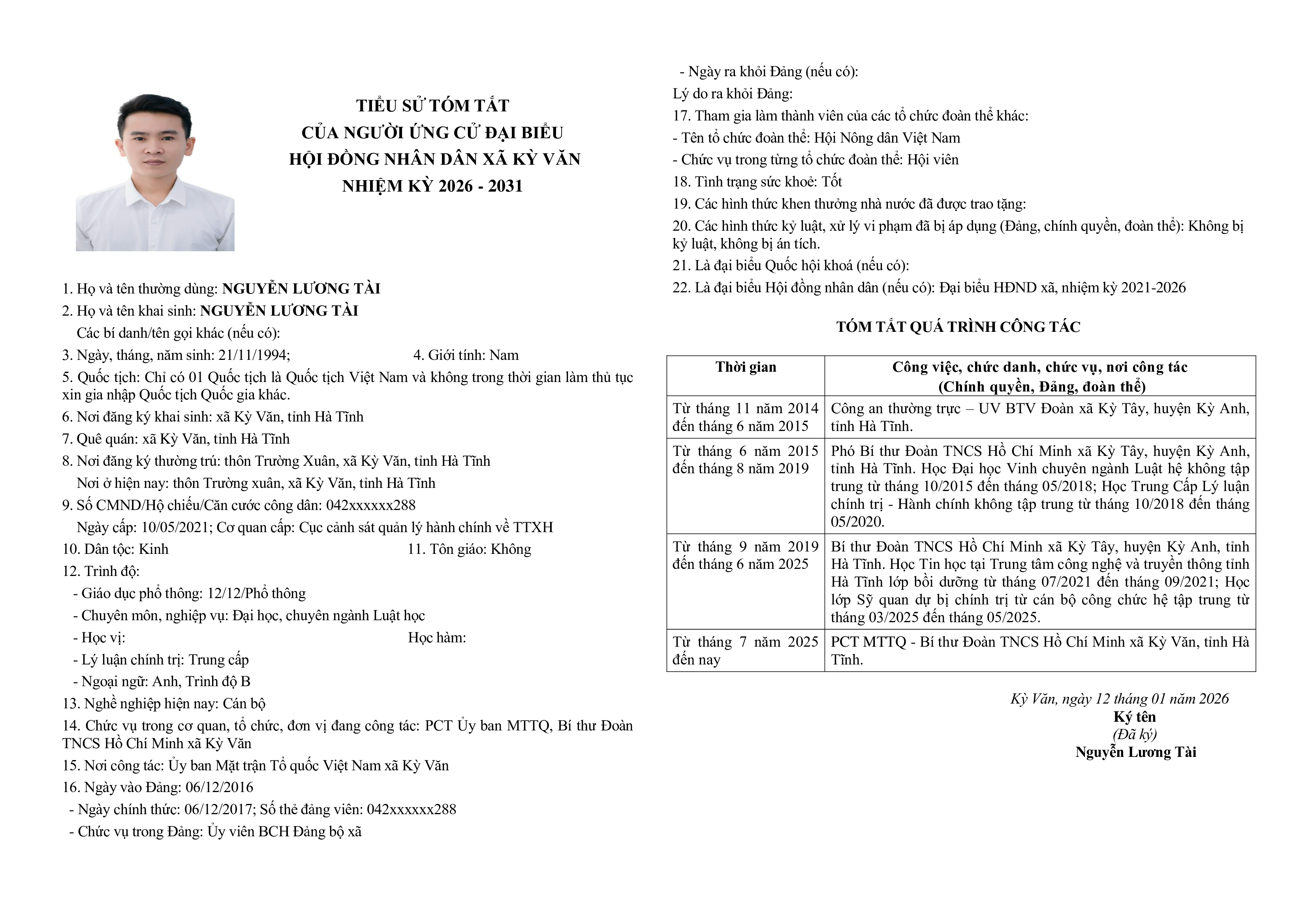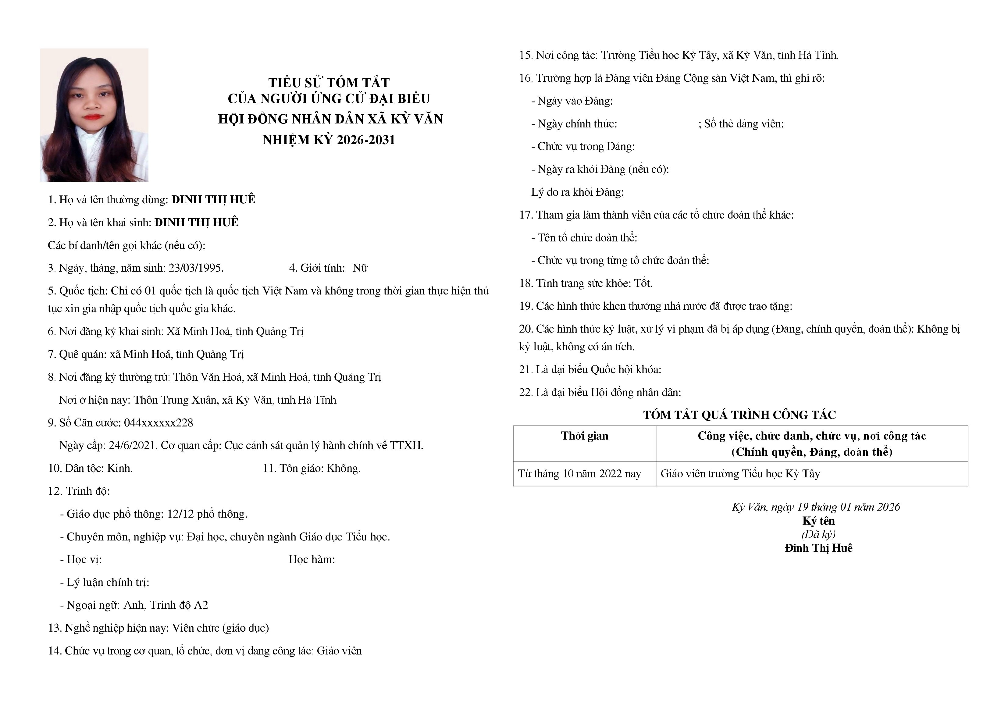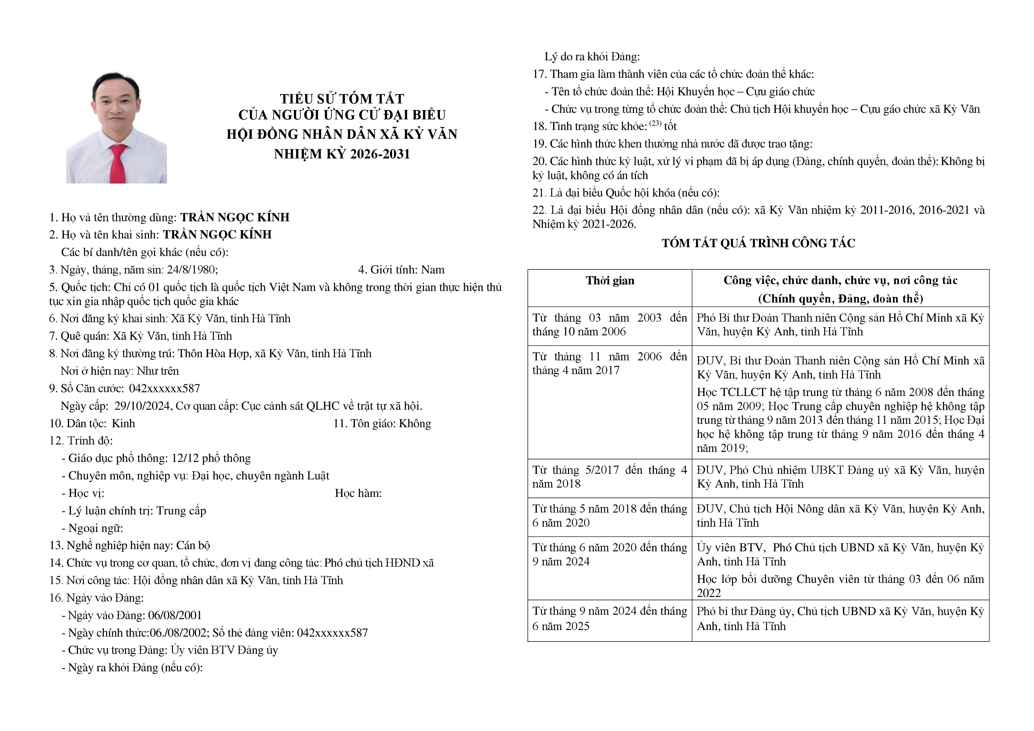 Tiểu sử tóm tắt những người ứng cử đại biểu HĐND xã Kỳ Văn nhiệm kỳ 2026-2031 tại đơn vị bầu cử số 04