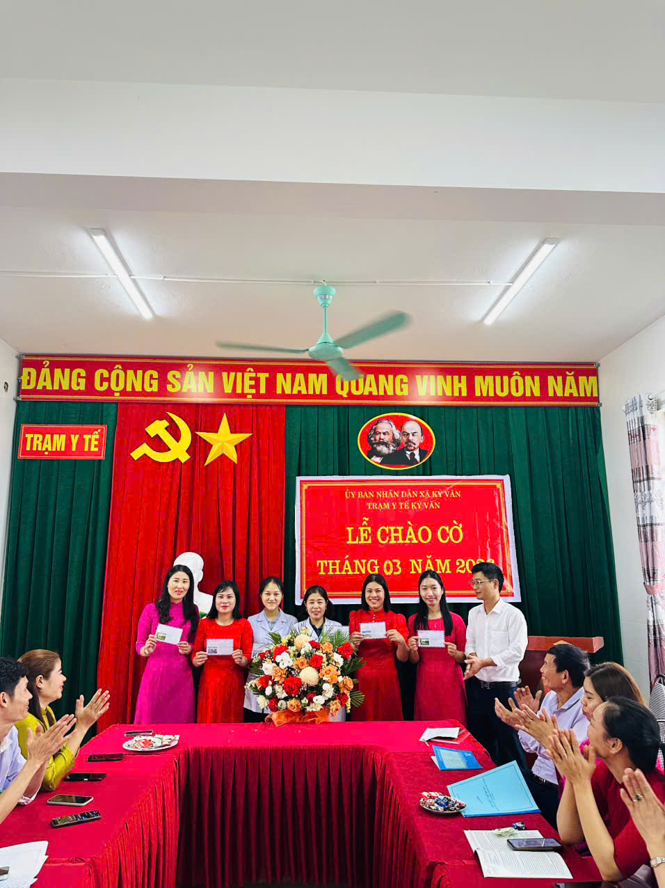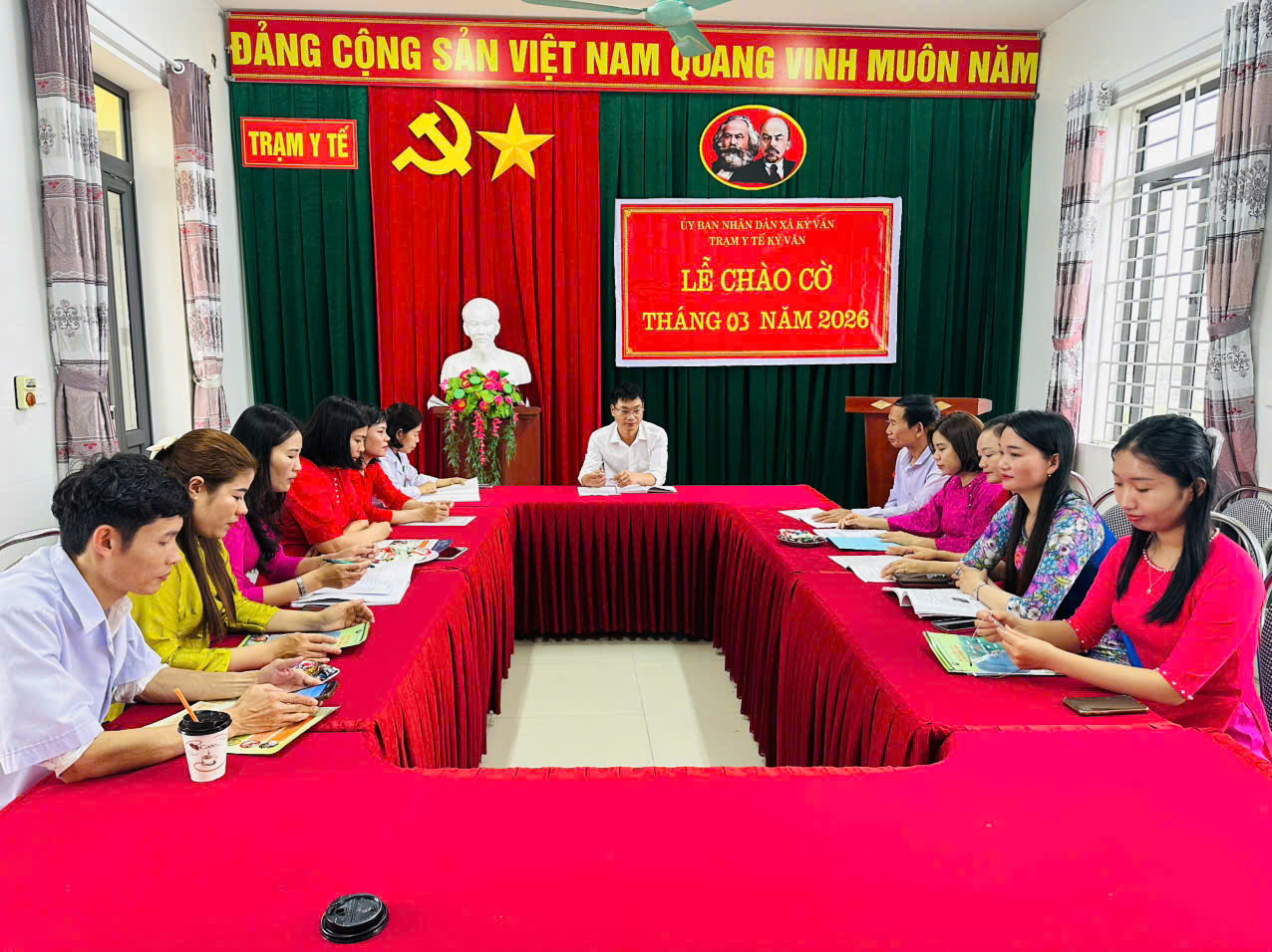 Tại buổi Chào cờ, đồng chí đã quán triệt nghiêm túc đến toàn thể cán bộ, đảng viên, người lao động; các điểm trạm, bộ phận liên quan, trong tháng 03 tiếp tục đẩy mạnh công tác giáo dục chính trị tư tưởng; tăng cường chấn chỉnh kỷ luật, kỷ cương, thái độ y đức; quy tắc văn hoá ứng xử..; thực hiện nghiêm túc các nội quy, quy chế ngành và cơ quan; tập trung lãnh đạo, chỉ đạo thực hiện tốt nhiệm vụ chuyên môn theo kế hoạch của cơ quan. Nâng cao chất lượng khám chữa bệnh, điều trị đúng quy định, đảm bảo an toàn người bệnh; Đảm bảo quy chế thường trực 24/24 giờ; Cung ứng đủ thuốc, vật tư thiết yếu phục vụ cấp cứu, khám, chữa bệnh. Tập trung chỉ đạo thực hiện nội dung chương trình mục tiêu Quốc gia Y tế và dân số, phòng chống dịch bệnh trên địa bàn; đồng thời giao nhiệm vụ cụ thể cho các bộ phận liên quan thực hiện nhiệm vụ trọng tâm trong tháng 3. Đồng chí mong muốn trong tháng tập thể Trạm y tế xã Kỳ Văn sẽ đoàn kết, vượt qua khó khăn, thống nhất, phối hợp tổ chức thực hiện có hiệu quả các chỉ tiêu đề ra, hoàn thành nhiệm vụ chuyên môn, nhiệm vụ chính trị, góp phần xây dựng Trạm phát triển bền vững.