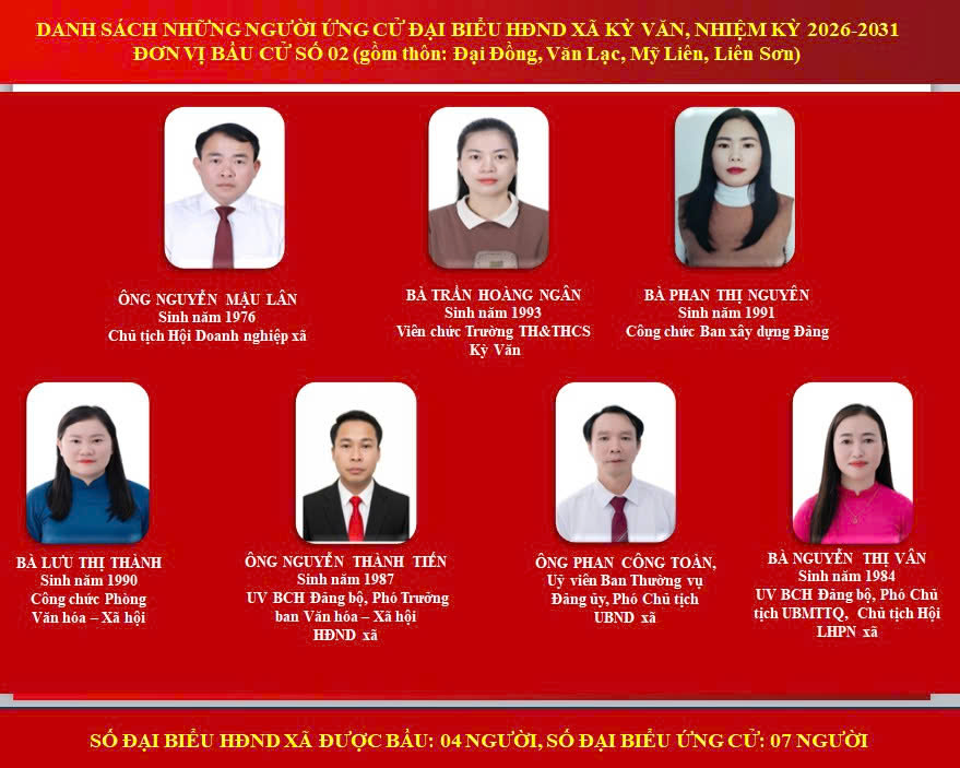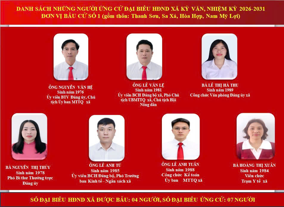 Ủy ban MTTQ Việt Nam xã giới thiệu chân dung 31 ứng cử viên đại biểu HĐND xã Kỳ Văn, nhiệm kỳ 2026 – 2031: