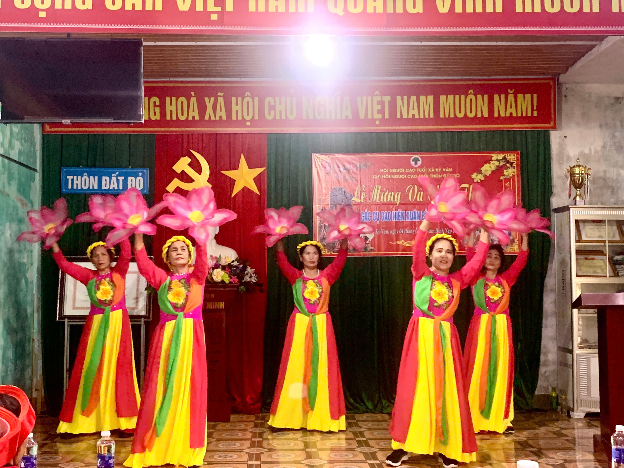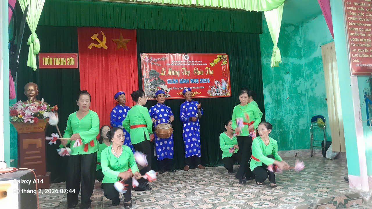 Chương trình văn nghệ chào mừng được đội văn nghệ các thôn chuẩn bị đầy đủ, chu đáo, tạo không khí vui tươi phấn khởi trong lễ mừng thọ, chúc thọ.