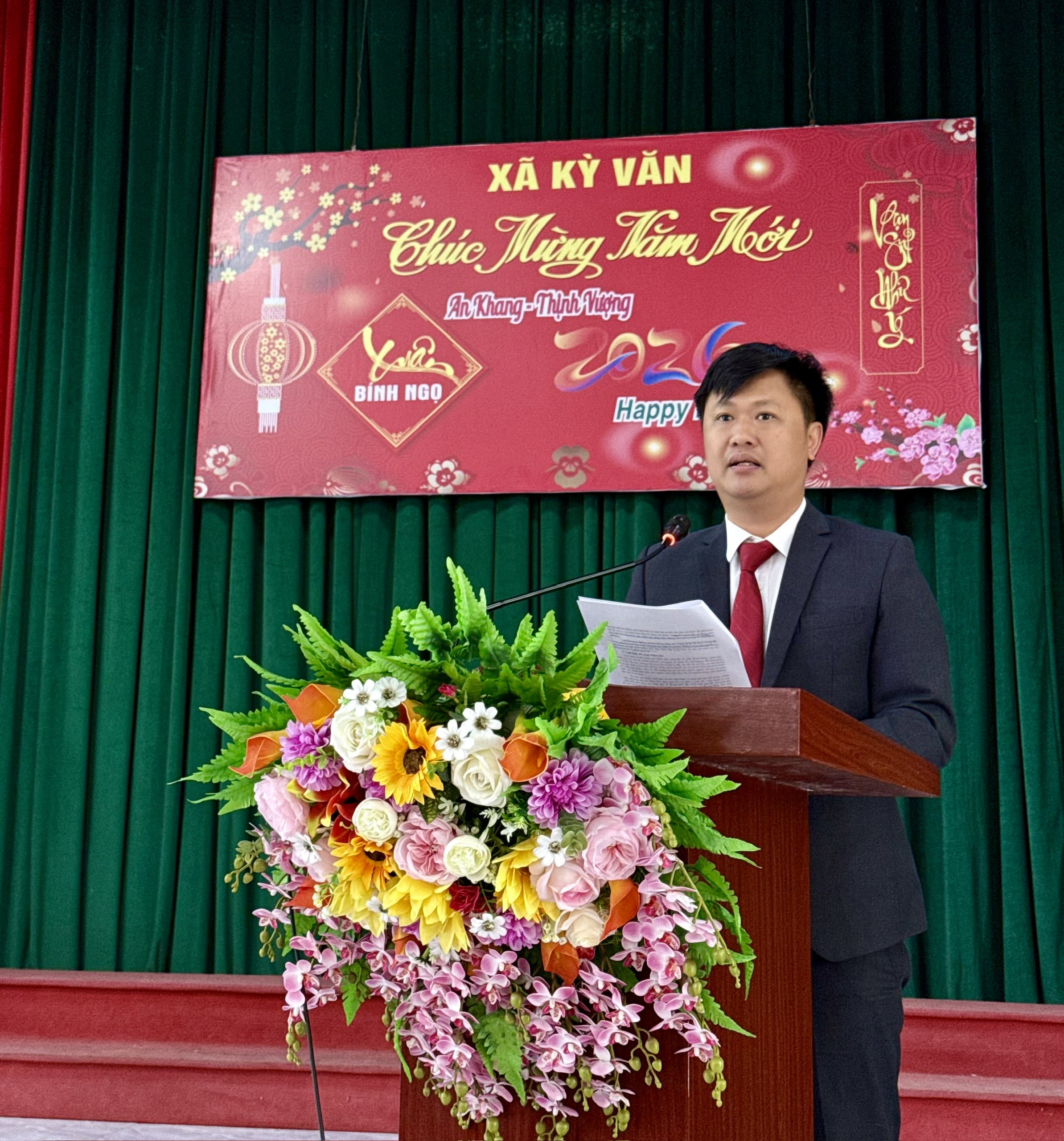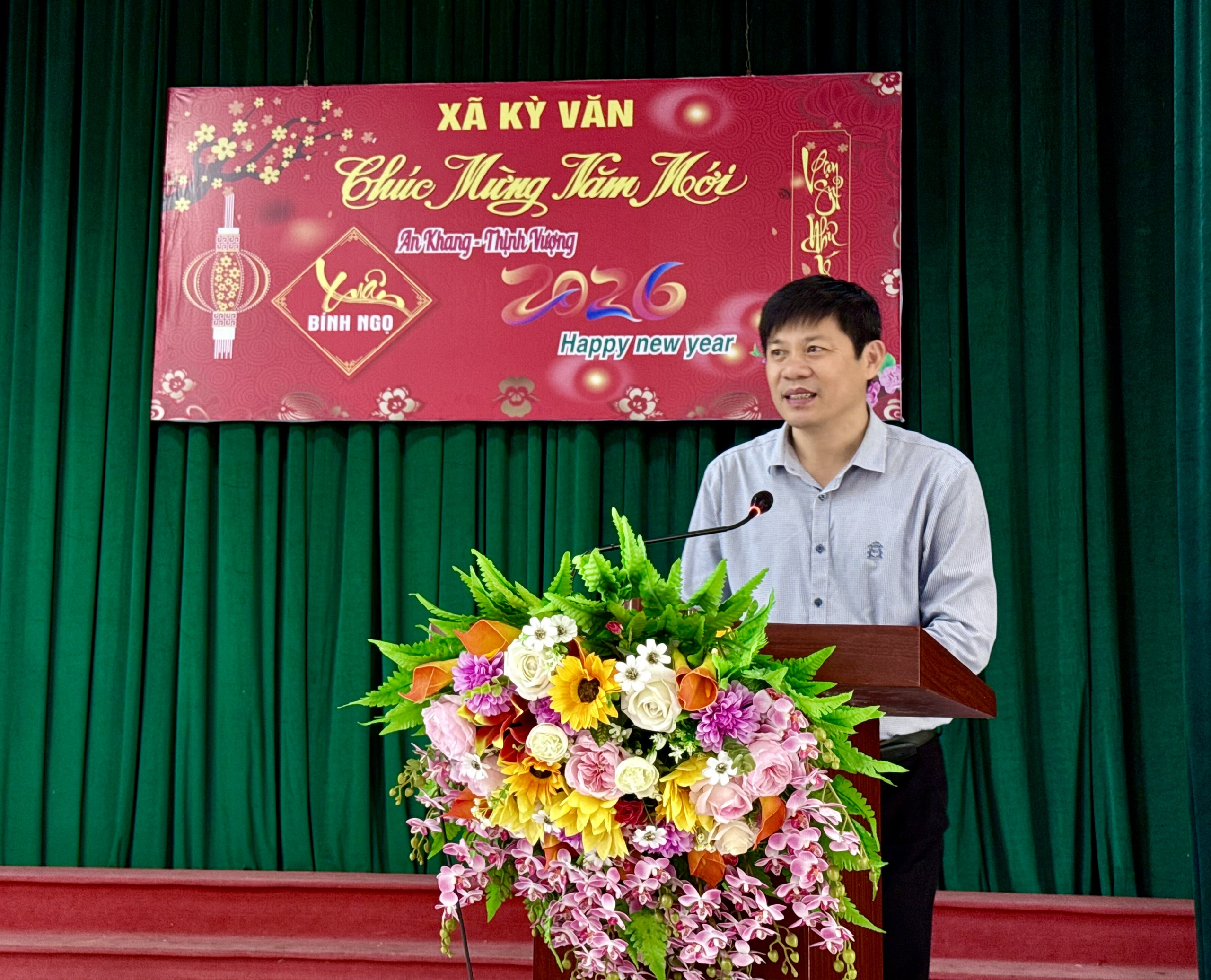 Phát biểu tại buổi gặp mặt, đồng chí Nguyễn Ngọc Hoạch - Bí thư Đảng uỷ, Chủ tịch HĐND xã đã gửi lời chúc mừng năm mới tới toàn thể cán bộ, công chức và người lao động trong cơ quan. Đồng chí ghi nhận, biểu dương những nỗ lực, cố gắng của tập thể trong năm vừa qua, góp phần quan trọng vào sự phát triển kinh tế – xã hội, giữ vững quốc phòng – an ninh và xây dựng hệ thống chính trị vững mạnh.