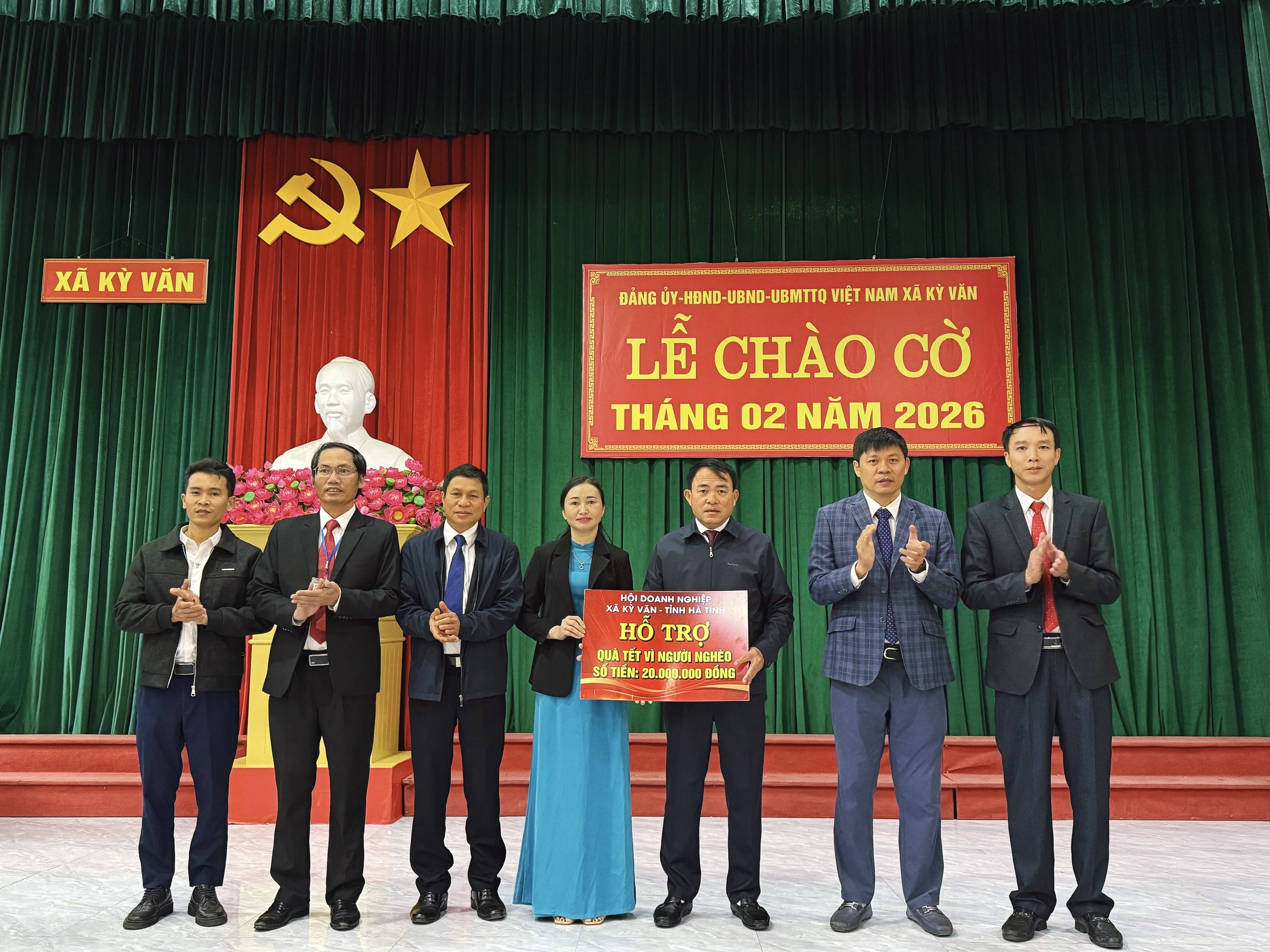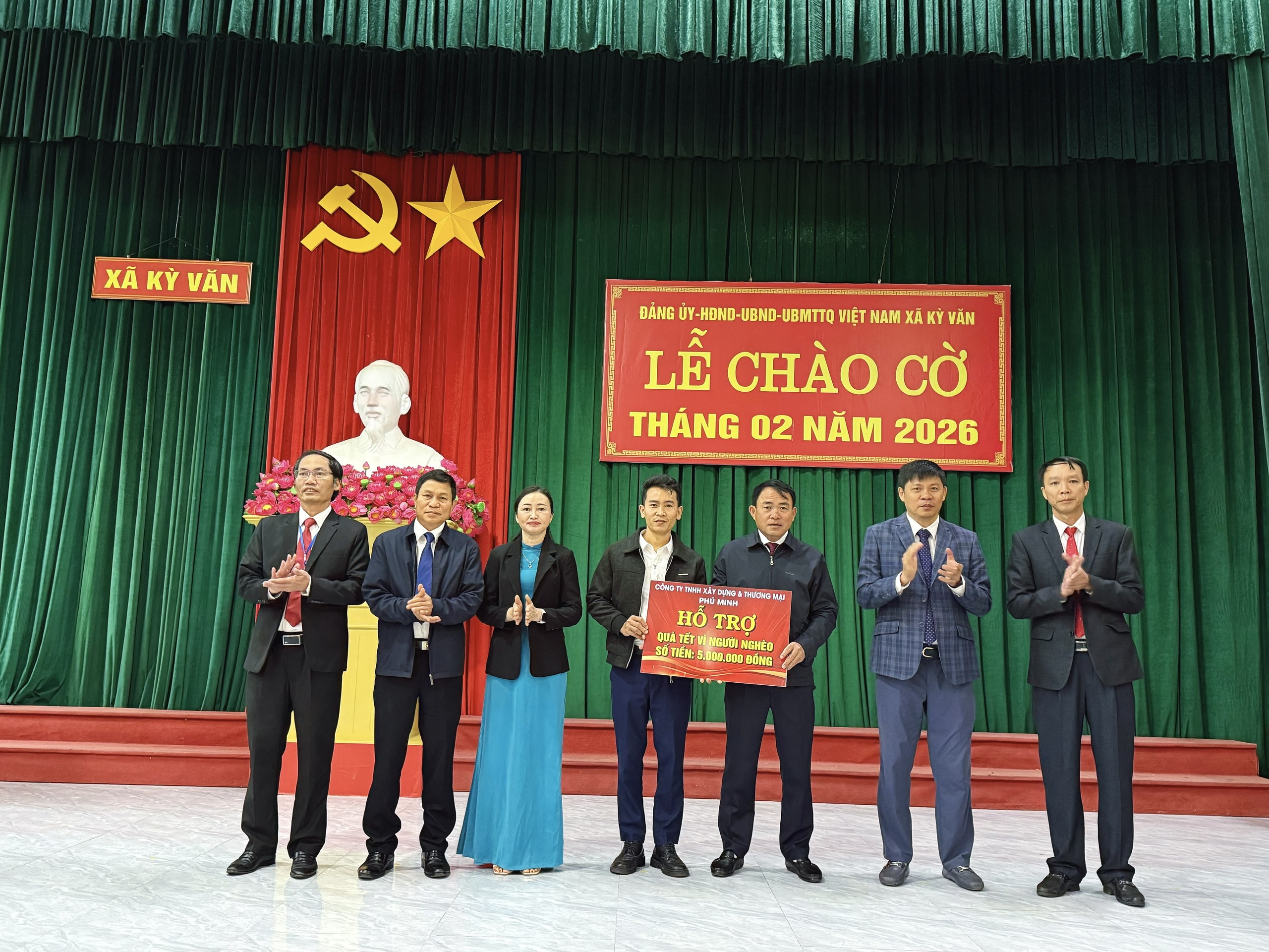 Cũng tại buổi lễ chào cờ, Ban vận động quỹ “vì người nghèo” xã Kỳ Văn đã nhận được nguồn kinh phí ủng hộ từ Hội Doanh nghiệp xã Kỳ Văn với số tiền 20.000.000 đồng và Công Ty TNHH Xây dựng & TM Phú Minh số tiền 5.000.000 đồng. Góp phần cùng với Chính quyền địa phương gửi tới các gia đình có hoàn cảnh khó khăn trên địa bàn xã những món quà thiết thực, động viên các hộ gia đình đón tết Nguyên đán năm 2026 thêm ấm áp hơn.