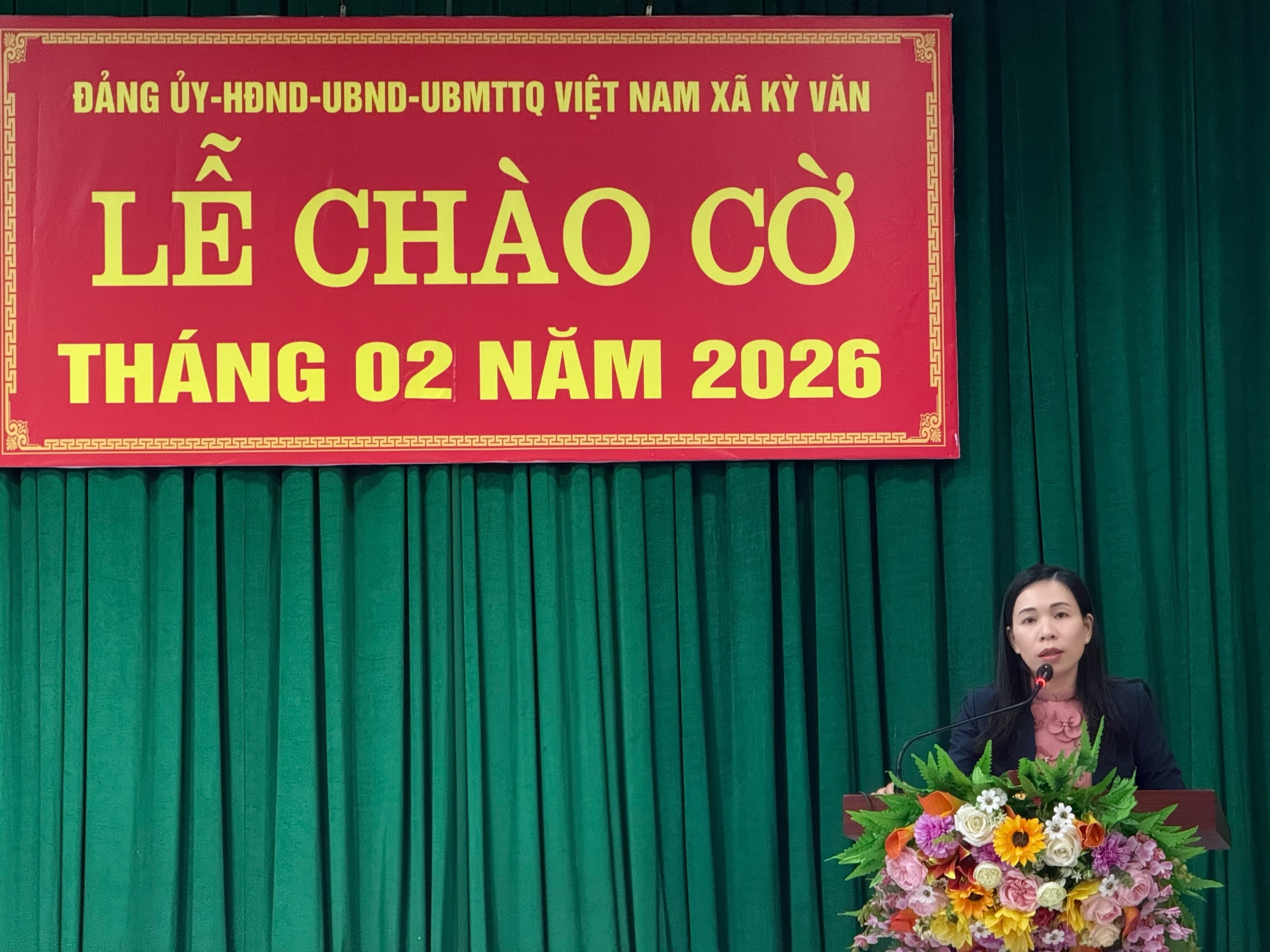 Tại buổi lễ chào cờ đầu tháng, đại diện lãnh đạo Đảng ủy xã đã trình bày báo cáo kết quả thực hiện nhiệm vụ tháng 01, triển khai nhiệm vụ tháng 02/2026. Lãnh đạo UBND xã báo cáo các Văn bản, chính sách mới có hiệu lực từ tháng 02 năm 2026.