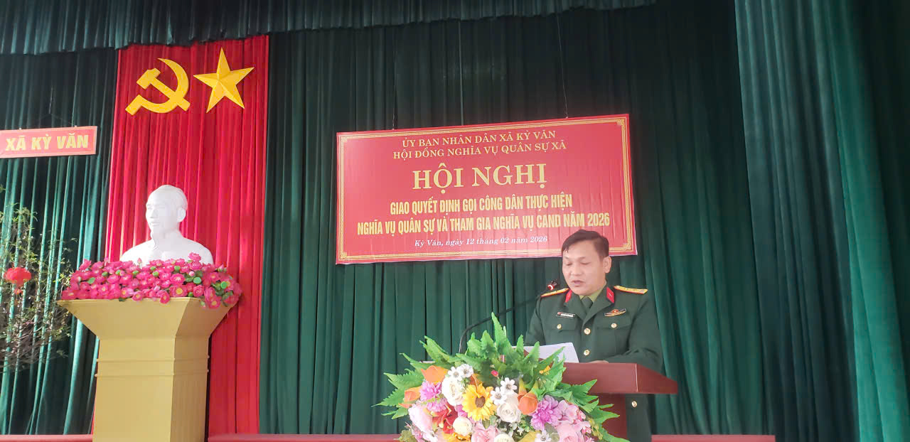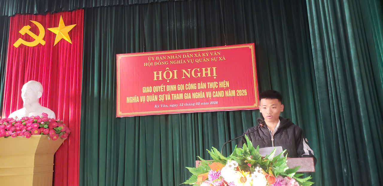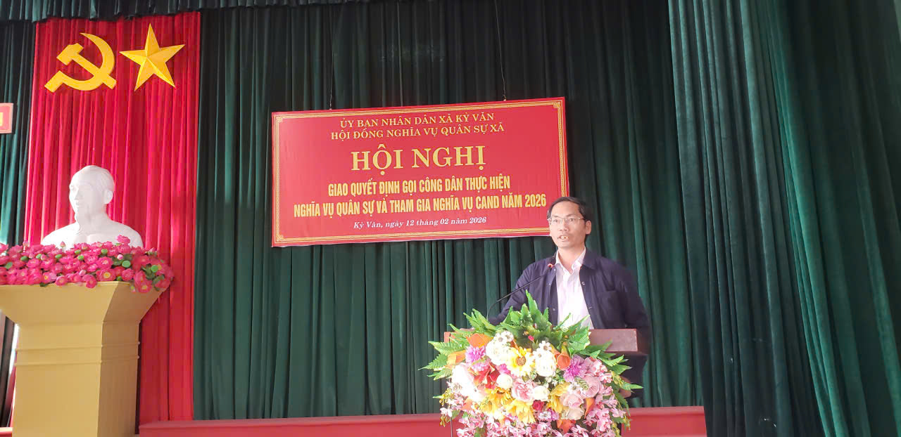 Phát biểu chỉ đạo tại buổi lễ, đồng chí Nguyễn Đức Thắng, Phó Bí thư Đảng ủy, Chủ tịch UBND xã, Chủ tịch Hội đồng Nghĩa vụ quân sự xã đã ghi nhận và biểu dương tinh thần trách nhiệm của các công dân trúng tuyển nghĩa vụ quân sự năm 2026. Đồng chí nhấn mạnh, thực hiện nghĩa vụ quân sự và nghĩa vụ tham gia Công an nhân dân là vinh dự, trách nhiệm thiêng liêng của mỗi công dân đối với Tổ quốc. Đồng thời, đồng chí động viên các công dân an tâm tư tưởng, phát huy truyền thống cách mạng của quê hương Kỳ Văn, chấp hành nghiêm chủ trương của Đảng, chính sách pháp luật của Nhà nước, điều lệnh Quân đội nhân dân và Công an nhân dân; tích cực rèn luyện bản lĩnh chính trị, đạo đức, tác phong, phấn đấu hoàn thành xuất sắc mọi nhiệm vụ được giao.