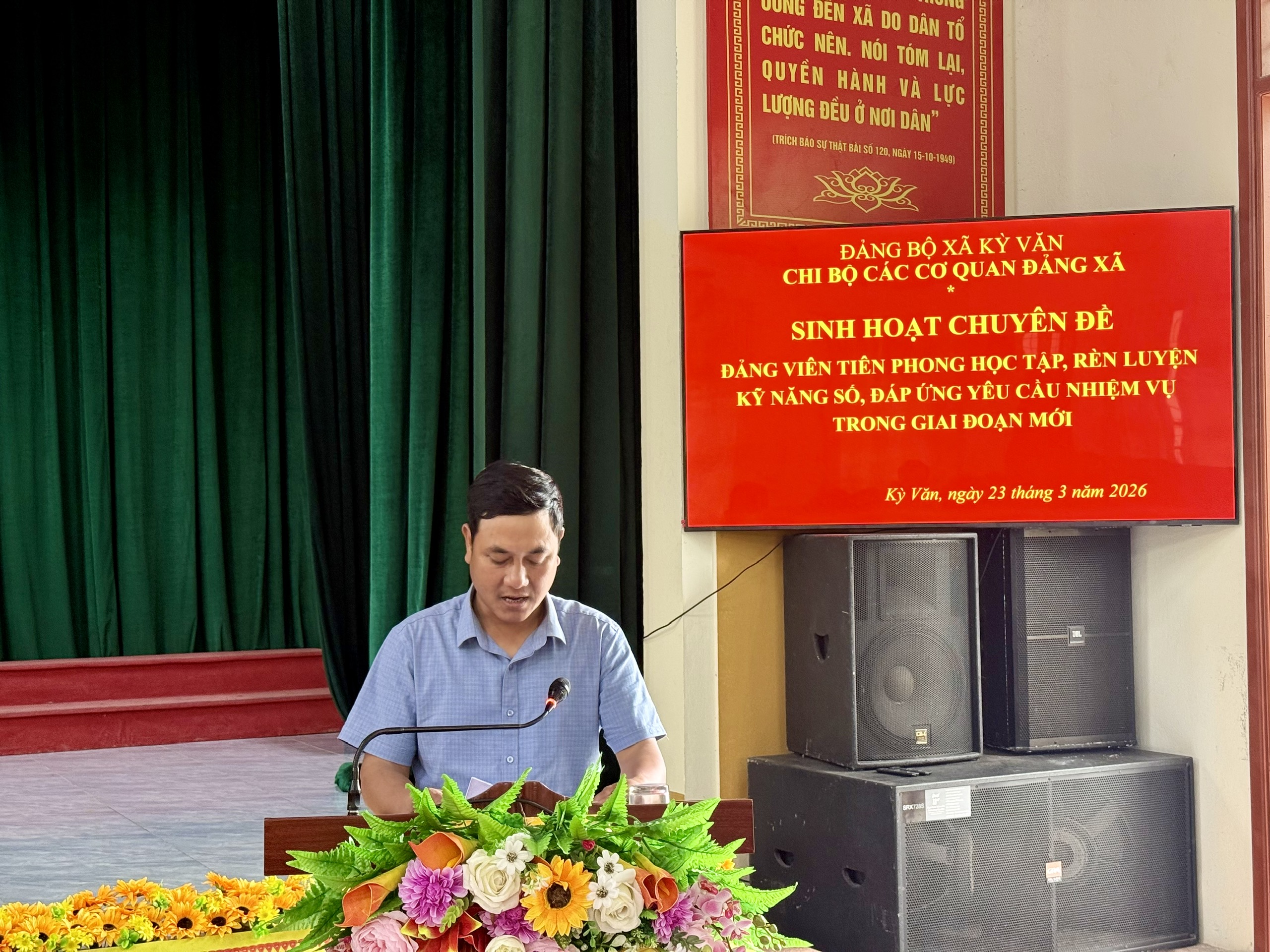 Phát biểu tại hội nghị, đồng chí Bí thư Chi bộ nhấn mạnh: trong bối cảnh chuyển đổi số đang diễn ra mạnh mẽ trên mọi lĩnh vực, mỗi đảng viên cần nêu cao tinh thần tiên phong, gương mẫu, chủ động học tập, rèn luyện và ứng dụng kỹ năng số một cách thực chất, hiệu quả; xem đây là yêu cầu bắt buộc, gắn liền với trách nhiệm chính trị và nhiệm vụ chuyên môn. Đồng chí cũng yêu cầu tiếp tục siết chặt kỷ luật, kỷ cương trong thực thi công vụ trên môi trường số; bảo đảm an toàn, an ninh thông tin; đồng thời phát huy vai trò của đảng viên trẻ trong hỗ trợ, hướng dẫn, lan tỏa kiến thức và kỹ năng số, góp phần xây dựng môi trường làm việc hiện đại, chuyên nghiệp.
