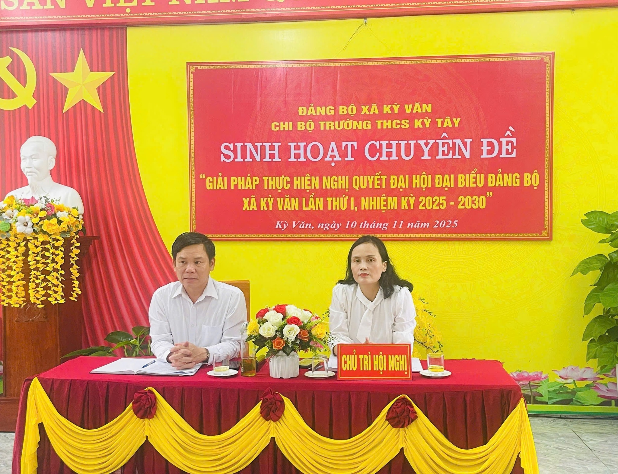 Ngày 10/11/2025, Chi bộ Trường THCS Kỳ Tây tổ chức sinh hoạt điểm chuyên đề về: “Giải pháp thực hiện Nghị quyết Đại hội đại biểu Đảng bộ xã Kỳ Văn lần thứ I, nhiệm kỳ 2025–2030”.