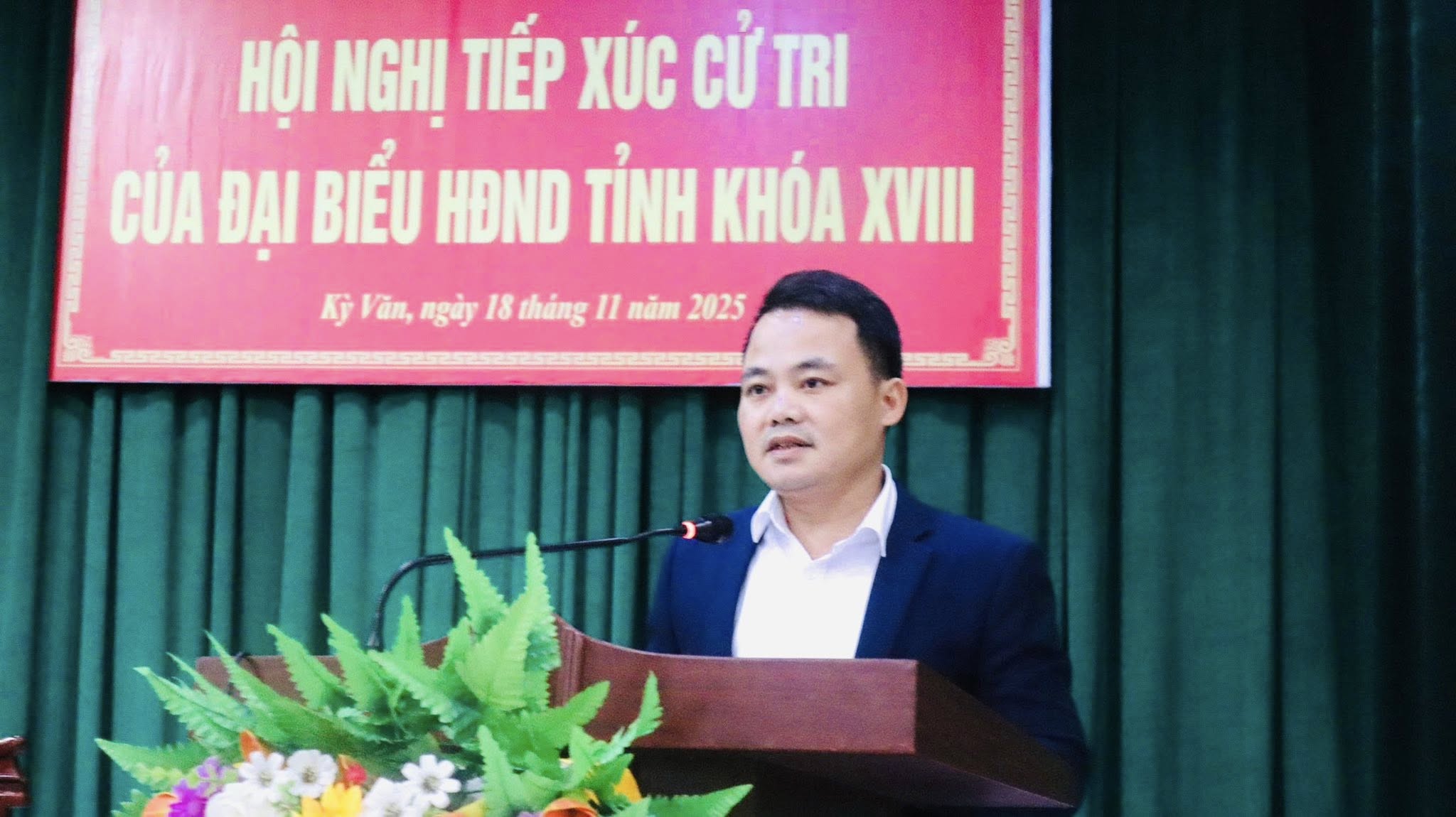 Thực hiện kế hoạch số 564/KH-HĐND ngày 11 tháng 11 năm 2025 của HĐND Tỉnh về việc Tiếp xúc cử tri của đại biểu Hội đồng nhân dân tỉnh trước kỳ họp cuối năm 2025 Hội đồng nhân dân tỉnh khóa XVIII. Chiều ngày 18/11/2025, tại Trung tâm hành chính xã Kỳ Văn, Đoàn đại biểu HĐND tỉnh đã tiếp xúc cử tri xã Kỳ Văn.