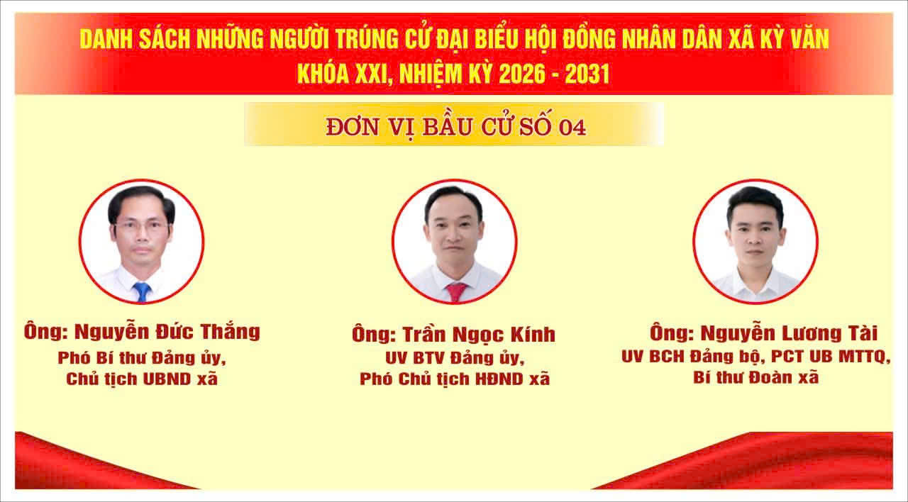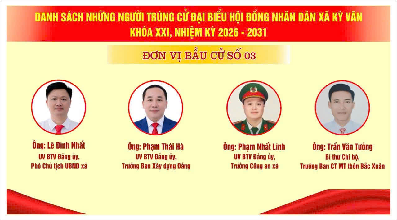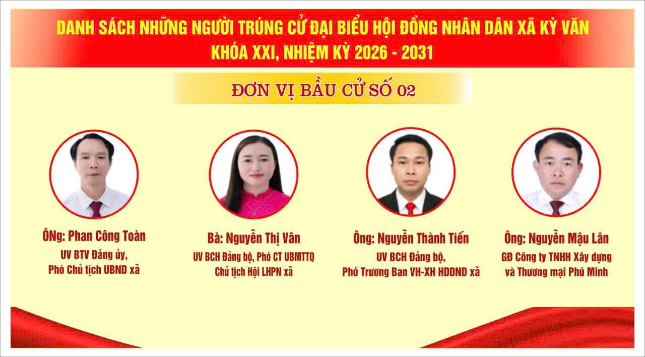 Danh sách 18 đại biểu HĐND xã Kỳ Văn, khóa XXI, nhiệm kỳ 2026 - 2031