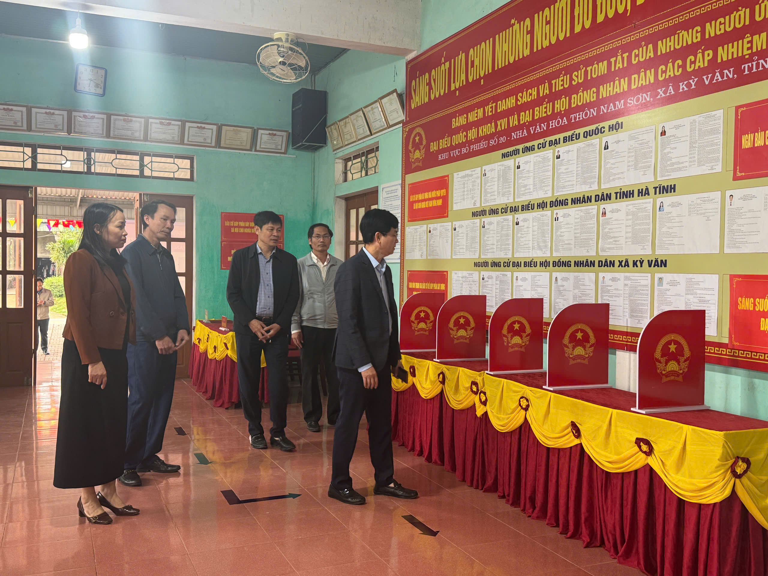 Đồng chí Nguyễn Thanh Điện, Phó Trưởng ban Thường trực Ban Nội chính Tỉnh ủy trực tiếp kiểm tra công tác chuẩn bị bầu cử đại biểu Quốc hội và Hội đồng nhân dân trên địa bàn xã Kỳ Văn