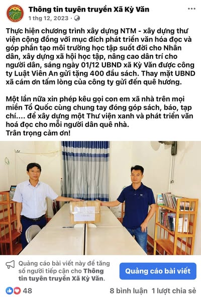 - Năm 2023, chị cũng đã gửi tặng gần 500 đầu sách cho Thư viện cộng đồng xã Kỳ Văn, góp phần nuôi dưỡng thói quen đọc sách và lan tỏa tri thức.