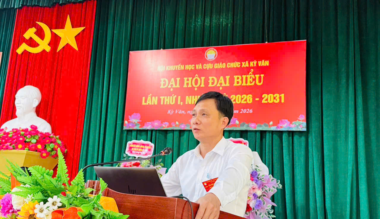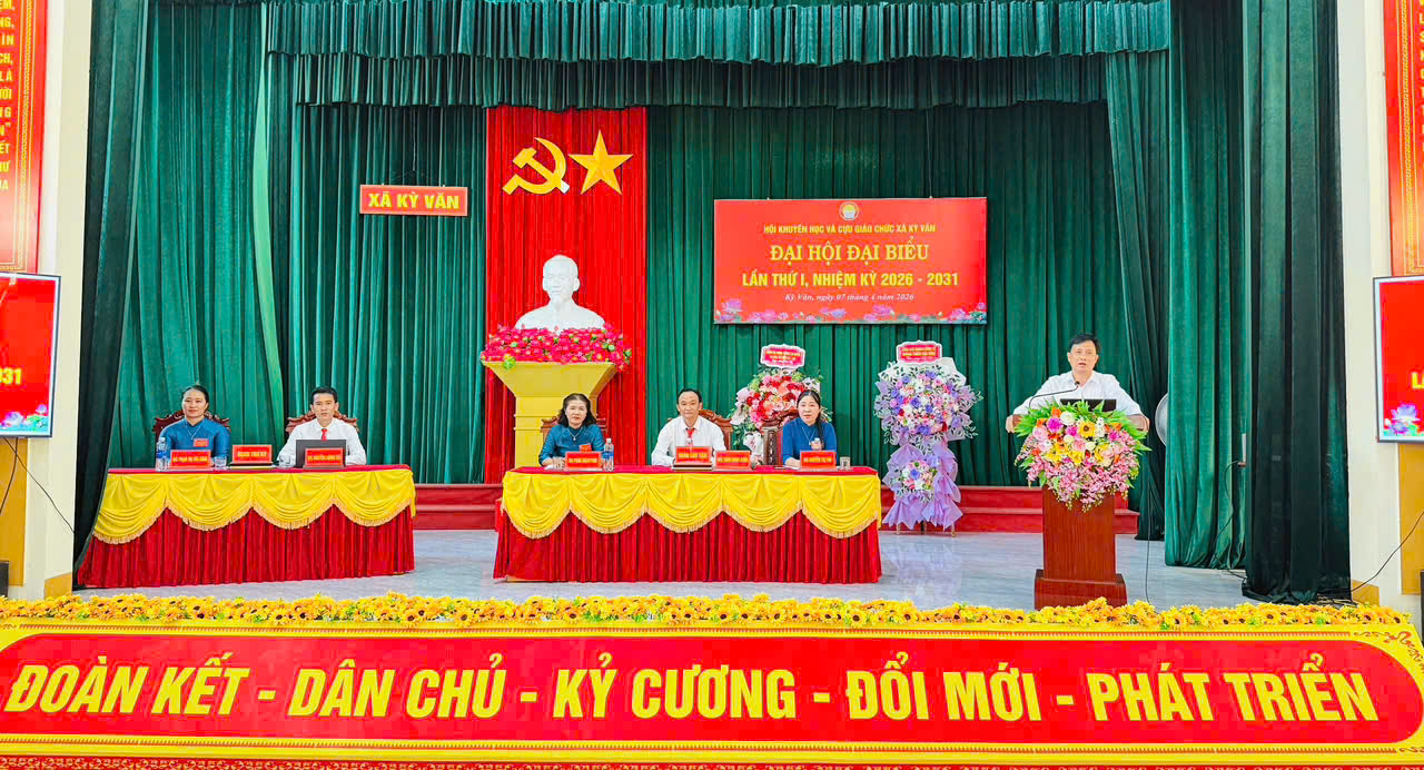 Chiều ngày 07/4/2026, Hội Khuyến học và cựu giáo chức xã Kỳ Văn đã long trọng tổ chức Đại hội lần thứ I, nhiệm kỳ 2026 – 2031. Đây là sự kiện có ý nghĩa quan trọng, nhằm đánh giá kết quả hoạt động khuyến học, khuyến tài, xây dựng xã hội học tập trong thời gian qua; đồng thời đề ra phương hướng, nhiệm vụ trong nhiệm kỳ mới.