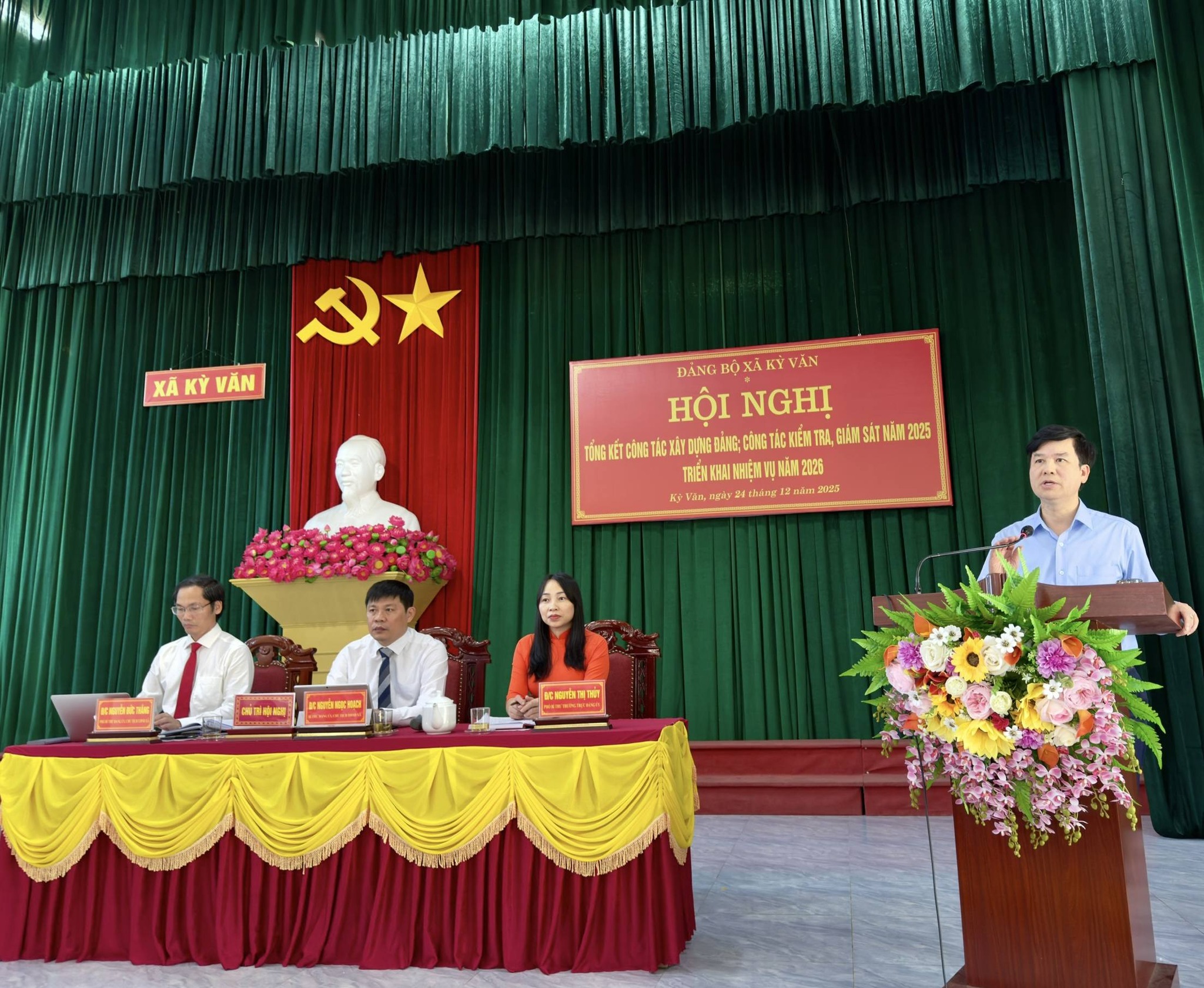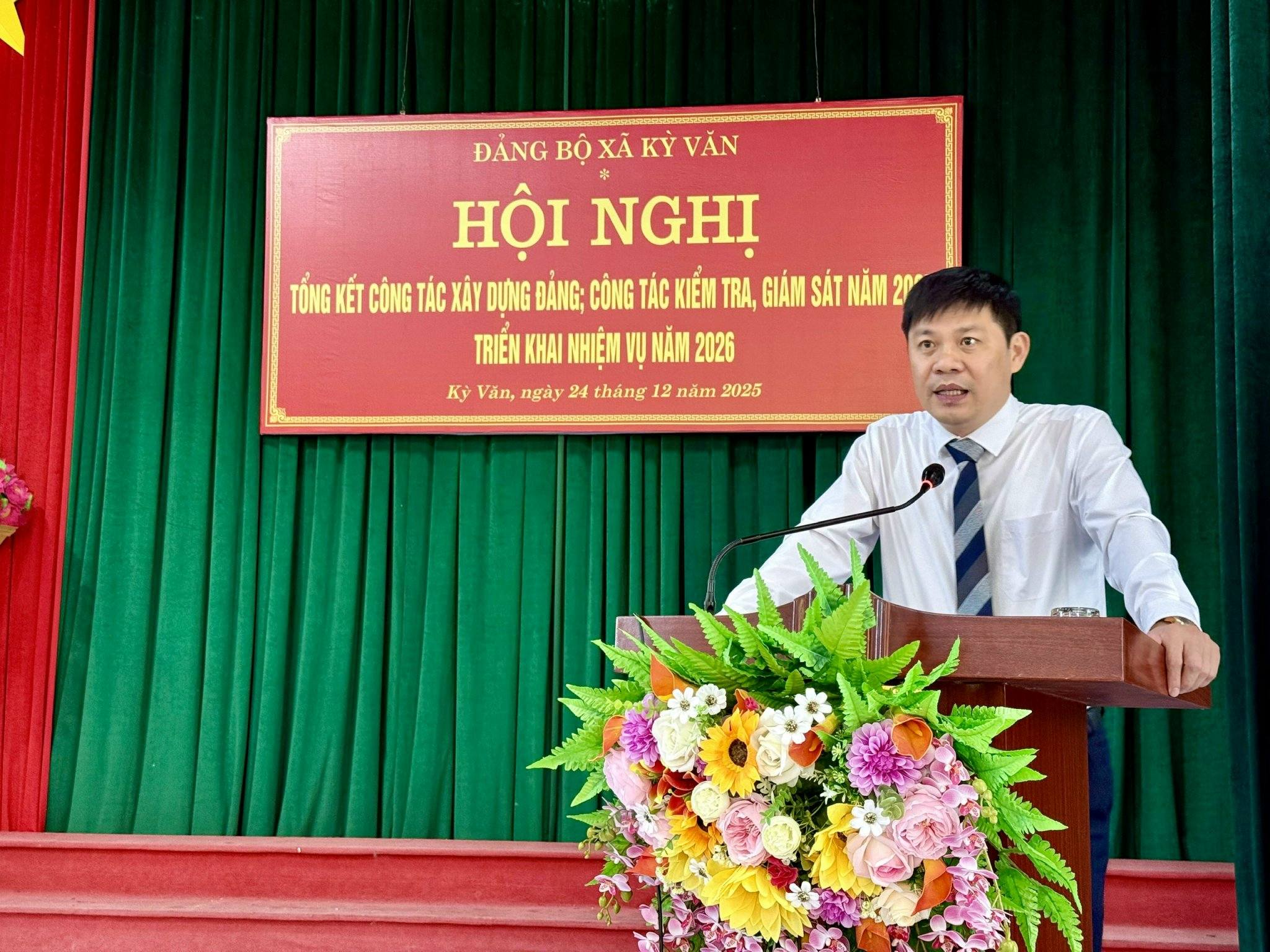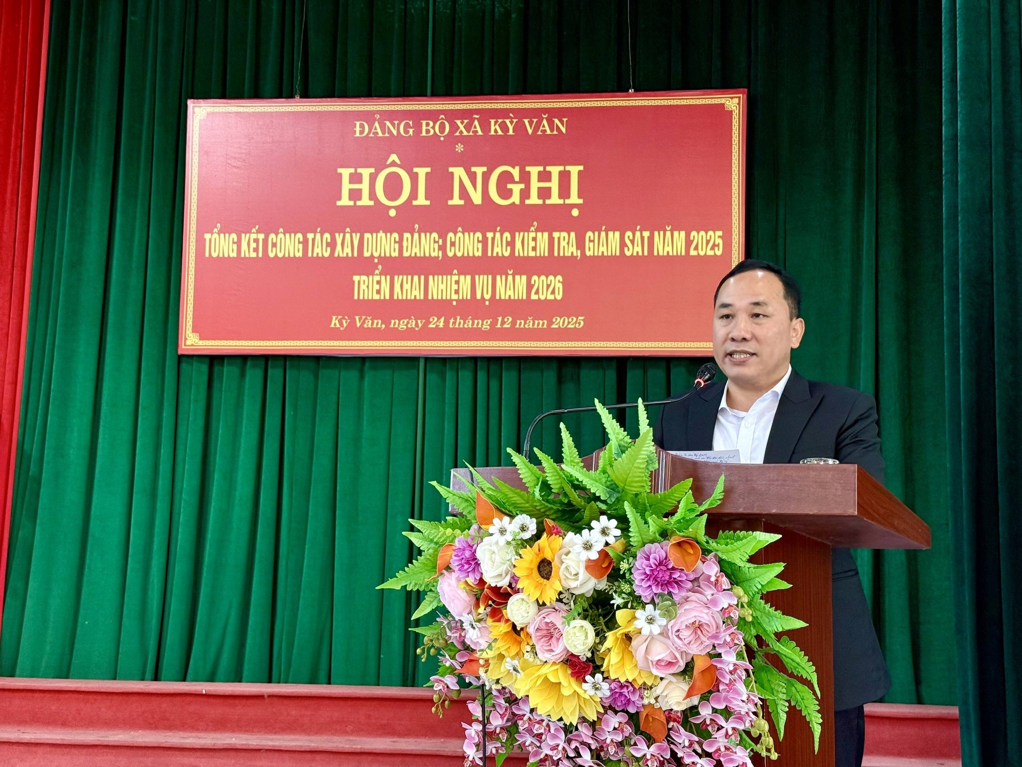 Chiều ngày 24/12/2025, tại Hội trường lớn UBND xã, Đảng bộ xã Kỳ Văn đã tổ chức Hội nghị tổng kết công tác xây dựng Đảng, công tác kiểm tra, giám sát năm 2025 và triển khai nhiệm vụ năm 2026.