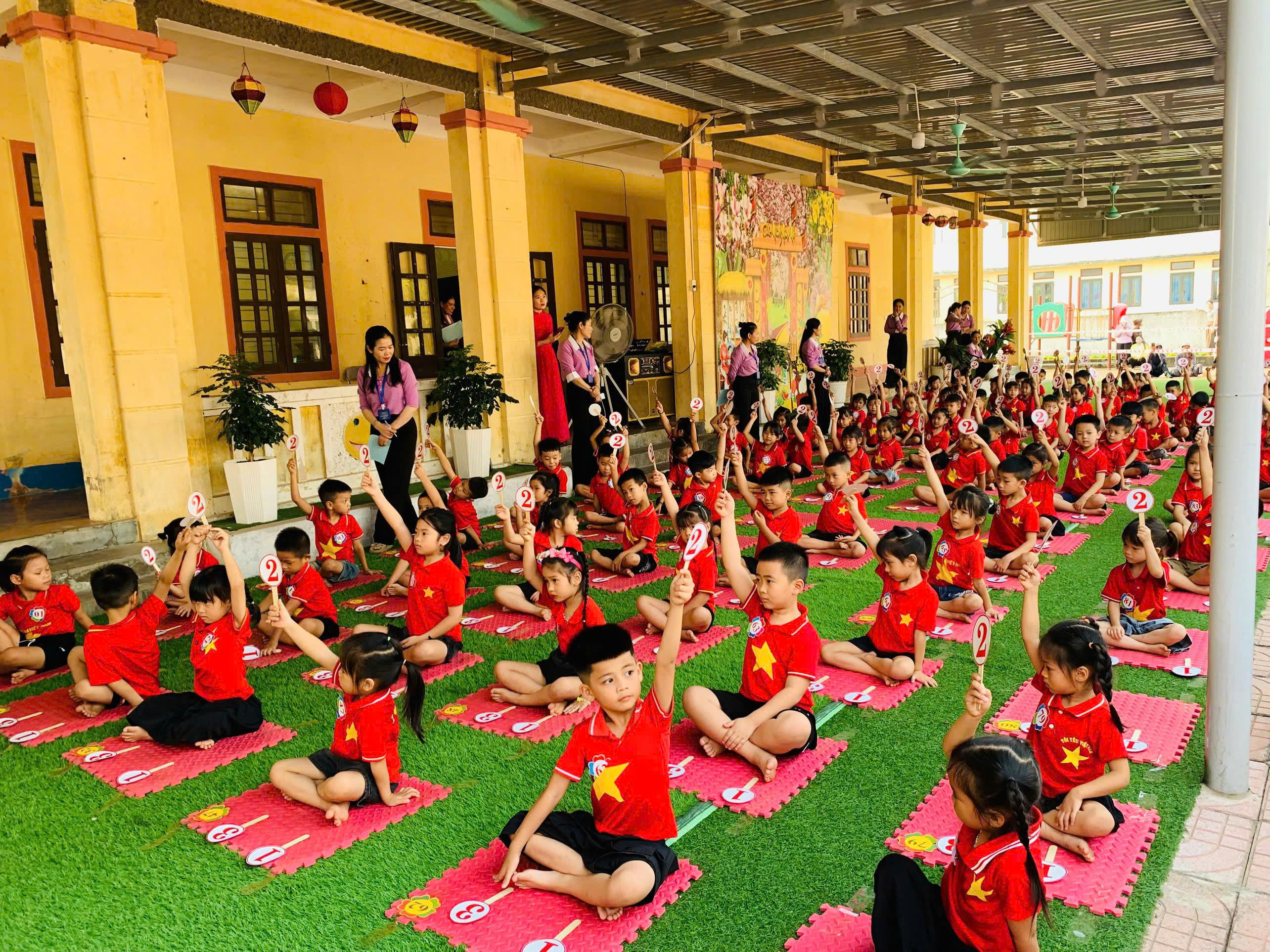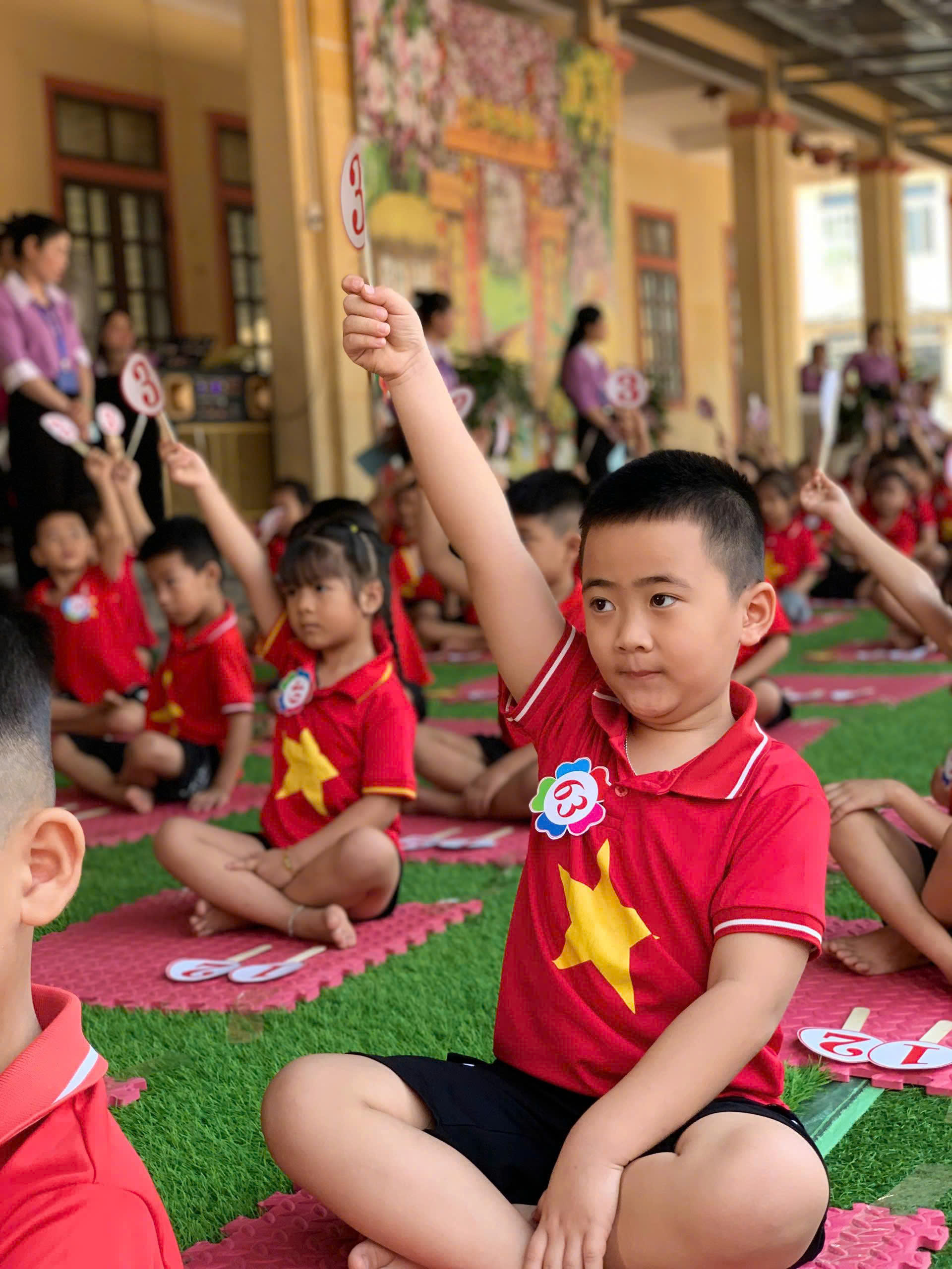 Những cánh tay giơ cao dứt khoát, những gương mặt chăm chú suy nghĩ, xen lẫn những nụ cười hồn nhiên… tất cả đã vẽ nên một bức tranh tuổi thơ sinh động và đầy cảm xúc. Ở đó, tri thức không còn khô khan mà trở nên gần gũi, sống động - như chính cách các con đang “Học bằng chơi - Chơi mà học”.