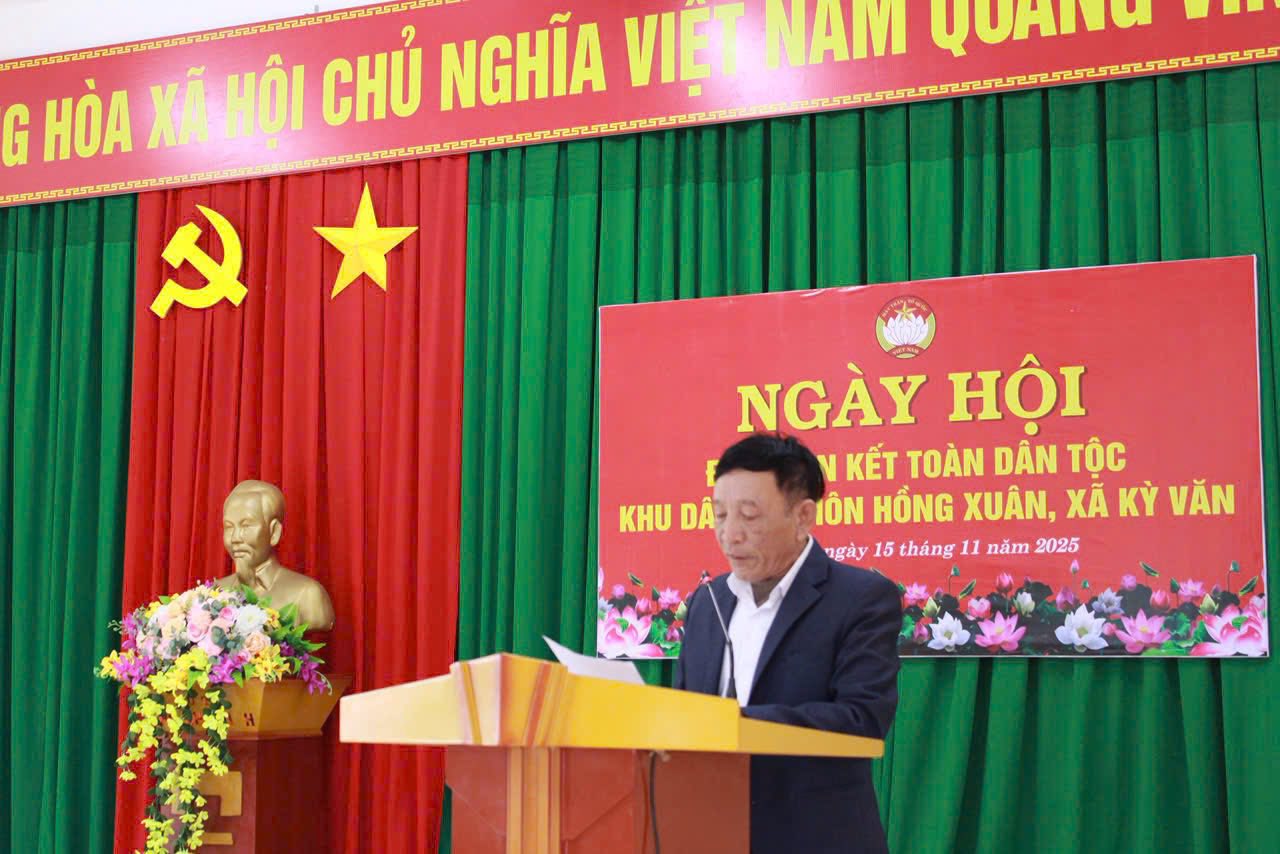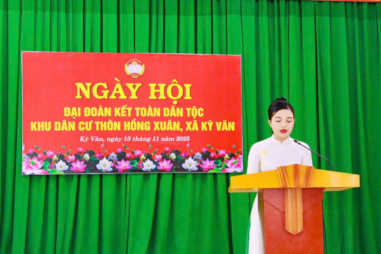 Chiều ngày 15/11/2025, Ban công tác Mặt trận thôn Hồng Xuân, xã Kỳ Văn, long trọng tổ chức Ngày hội Đại đoàn kết toàn dân tộc nhân Kỷ niệm 95 năm Ngày truyền thống Mặt trận Dân tộc thống nhất Việt Nam (18/11/1930 – 18/11/2025). Ngày hội diễn ra trong không khí ấm áp, vui tươi, thắm tình đoàn kết.