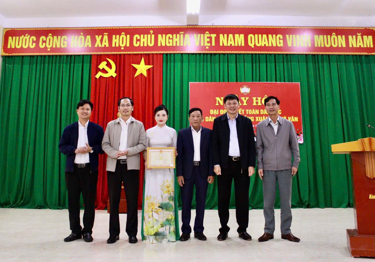 Đại diện lãnh đạo xã trao tặng Quyết định và Giấy khen Thôn văn hoá, GDVH cho Thôn Hồng Xuân