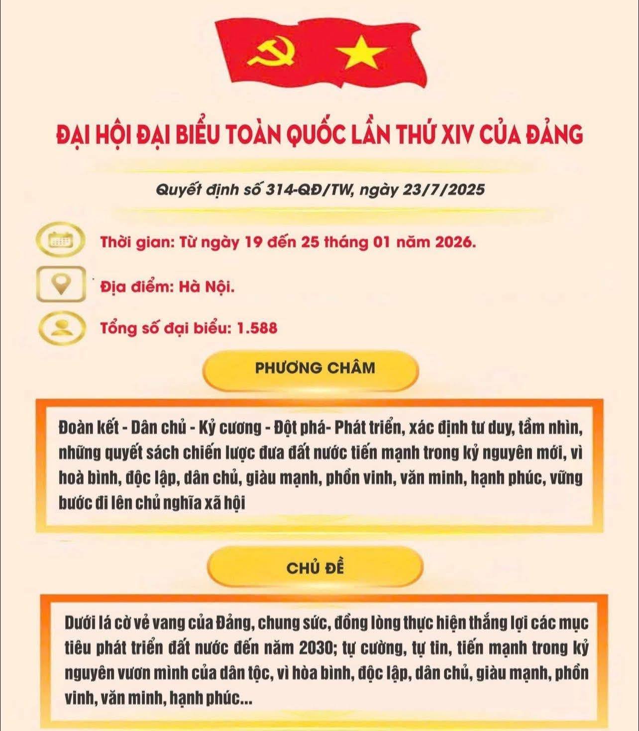 Thông tin chính về Đại hội Đại biểu Toàn quốc lần thứ XIV của Đảng