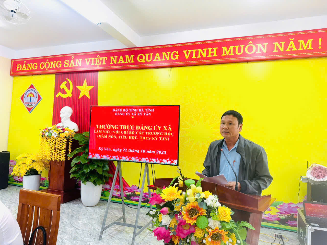 Phát biểu chỉ đạo, đồng chí Bí thư Đảng ủy đã ghi nhận, đánh giá cao kết quả đạt được của các Chi bộ trường học; đề nghị tiếp tục phát huy vai trò lãnh đạo của tổ chức Đảng trong các hoạt động chuyên môn, quan tâm công tác giáo dục chính trị tư tưởng cho đội ngũ giáo viên, đảng viên ; chú trọng công tác xã hội hóa giáo dục, huy động nguồn lực xã hội phục vụ cơ sở vật chất, môi trường dạy học; quan tâm công tác phát triển đảng viên mới, xây dựng Chi bộ trong sạch, vững mạnh, góp phần thực hiện thắng lợi các chỉ tiêu, nhiệm vụ năm học 2025 - 2026.