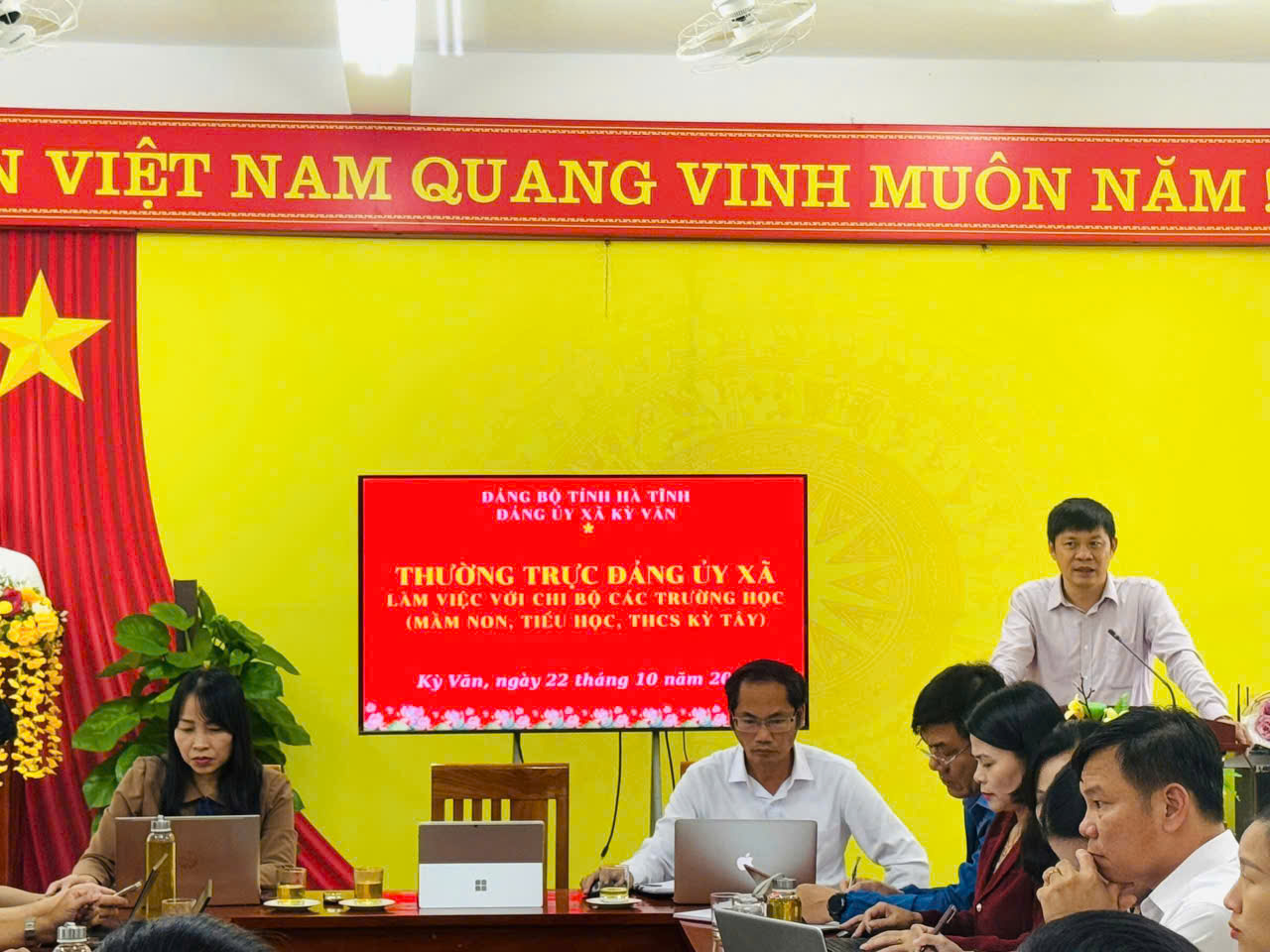 Thường trực Đảng ủy xã Kỳ Văn làm việc với chi bộ các Trường học ( Mầm Non, Tiểu Học, THCS Kỳ Tây)