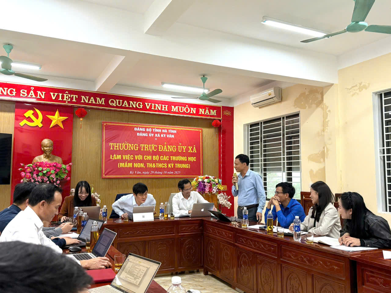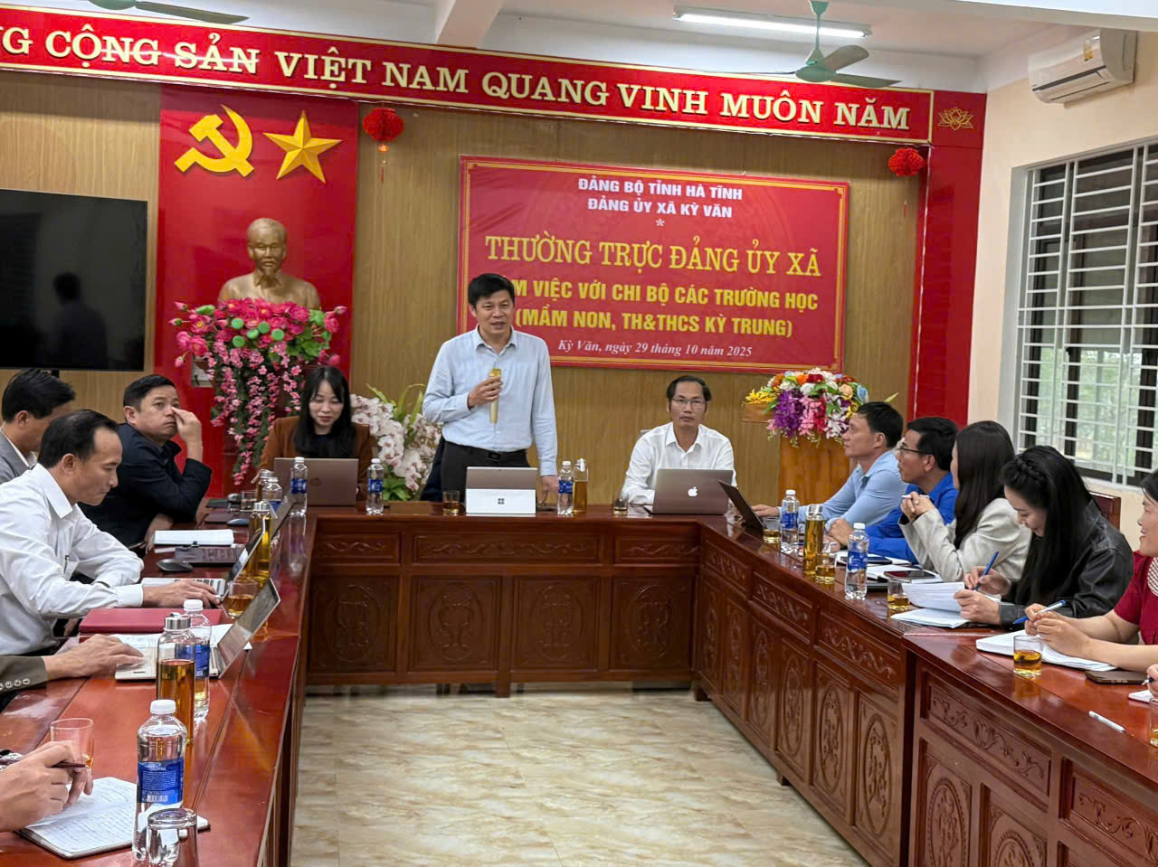 Chiều ngày 29/10/2025, Thường trực Đảng ủy tổ chức buổi làm việc với Chi bộ Trường Mầm Non Kỳ Trung và Trường TH & THCS Kỳ Trung, xã Kỳ Văn; nhằm nắm bắt tình hình hoạt động, công tác lãnh đạo, chỉ đạo thực hiện nhiệm vụ tại các đơn vị trường học.