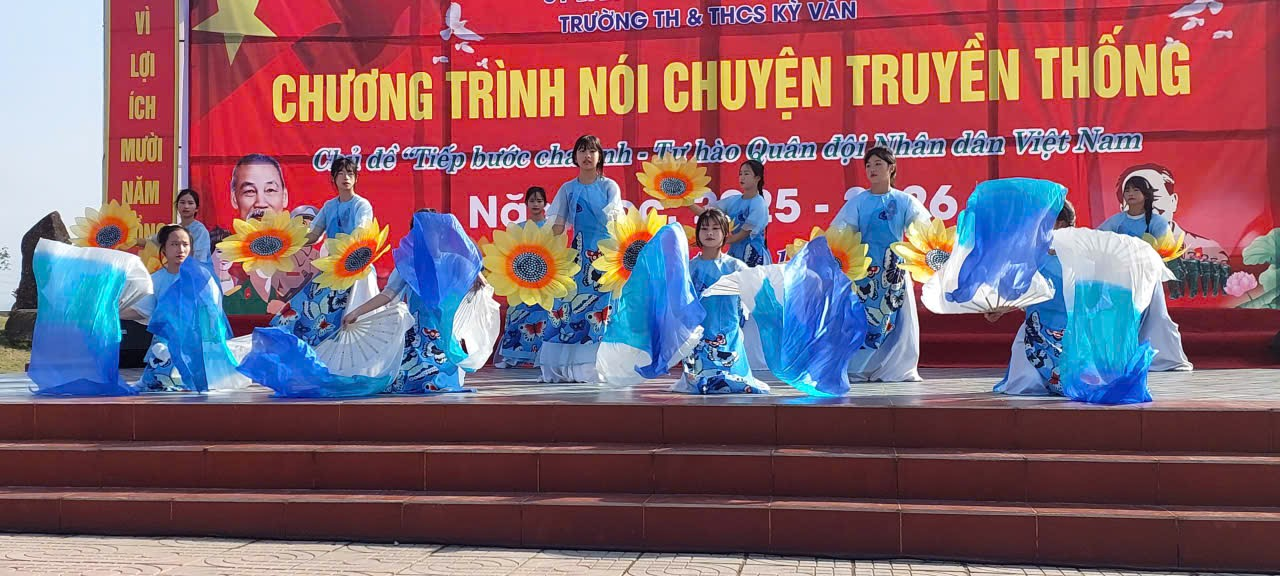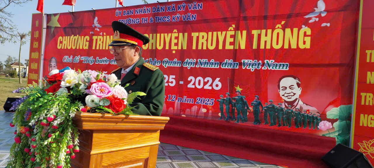 Hòa trong không khí thiêng liêng, tự hào của cả nước hướng về Ngày thành lập Quân đội Nhân dân Việt Nam 22/12 - Ngày Hội quốc phòng toàn dân. Chiều nay, ngày 19/12/2025, Trường TH&THCS Kỳ Văn long trọng tổ chức chương trình Nói chuyện truyền thống với chủ đề: “Tiếp bước cha anh - Tự hào Quân đội Nhân dân Việt Nam”.