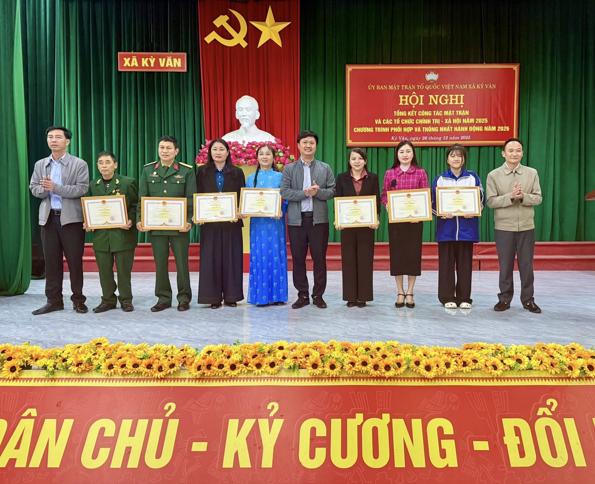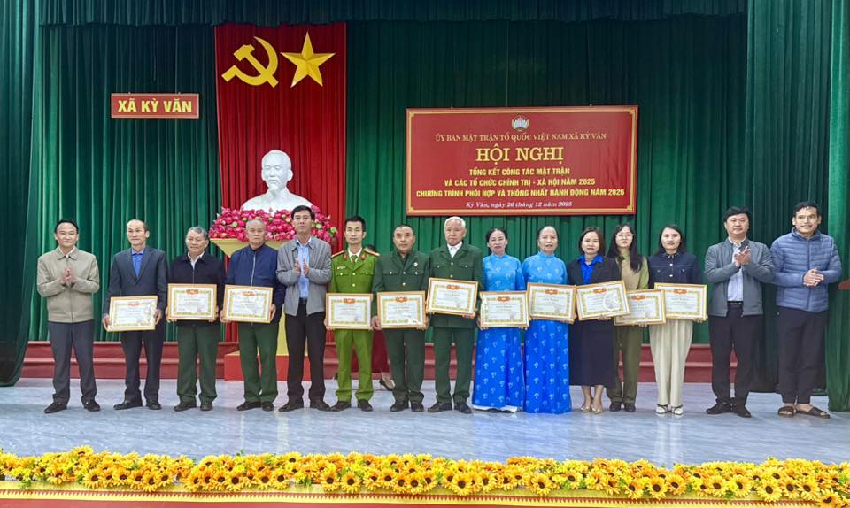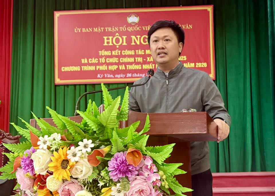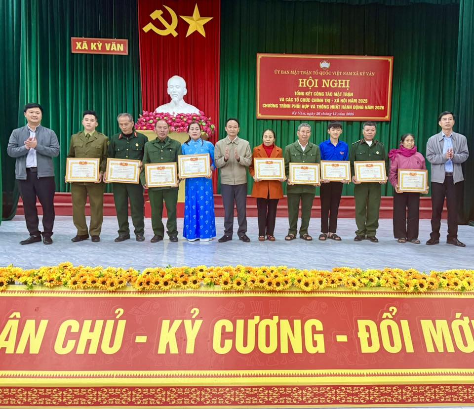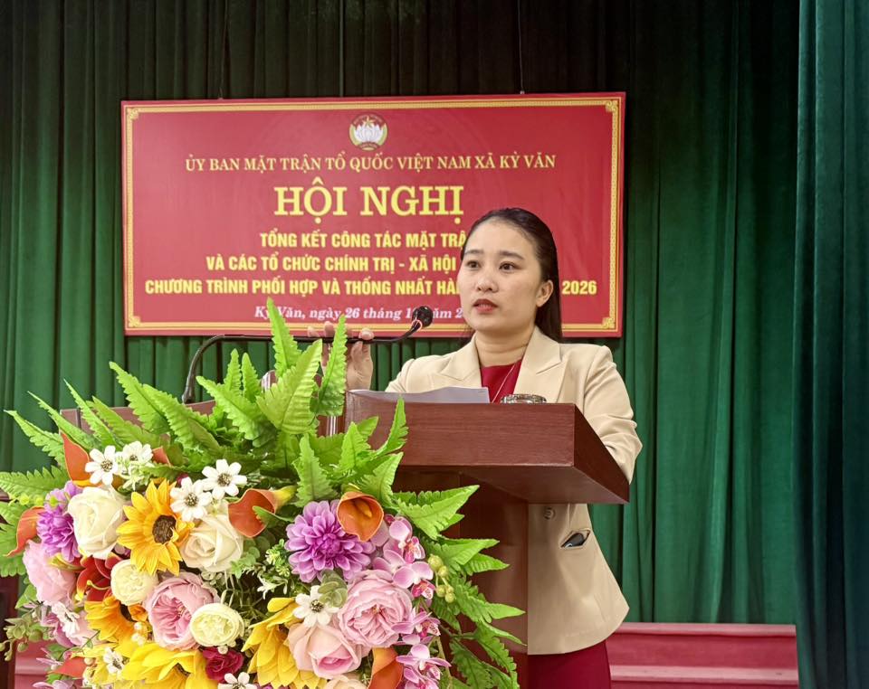 Chiều ngày 26/12/2025 Ủy ban Mặt trận Tổ quốc Việt Nam xã Kỳ Văn tổ chức Hội nghị tổng kết công tác Mặt trận và các tổ chức chính trị – xã hội, Hội xã hội năm 2025; Triển khai chương trình phối hợp và thống nhất hành động năm 2026.