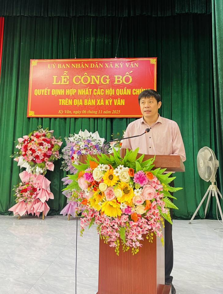 Sáng ngày 6/1/2025, Ủy ban nhân dân xã Kỳ Văn đã long trọng tổ chức Lễ công bố quyết định hợp nhất các hội quần chúng trên địa bàn xã.