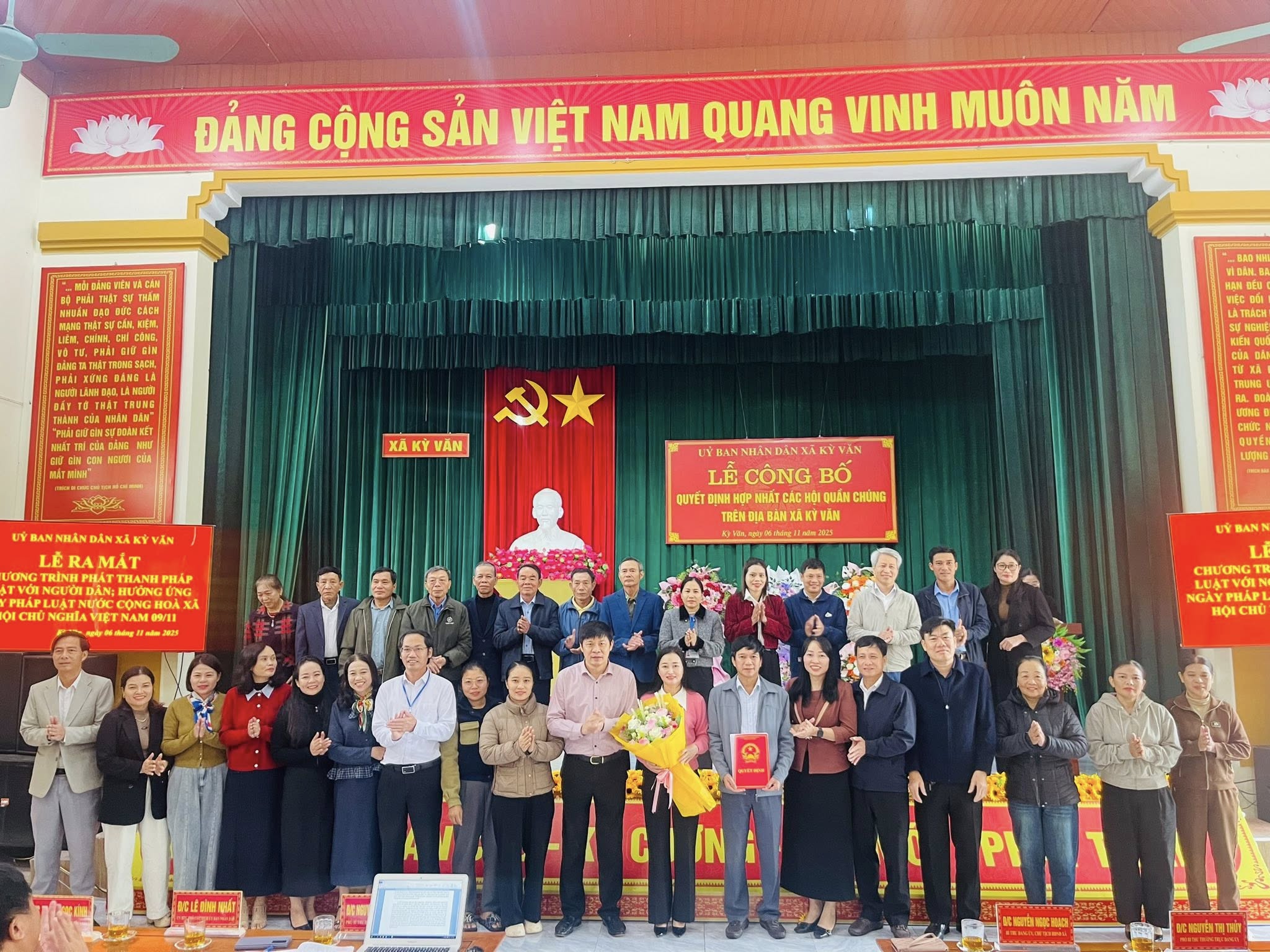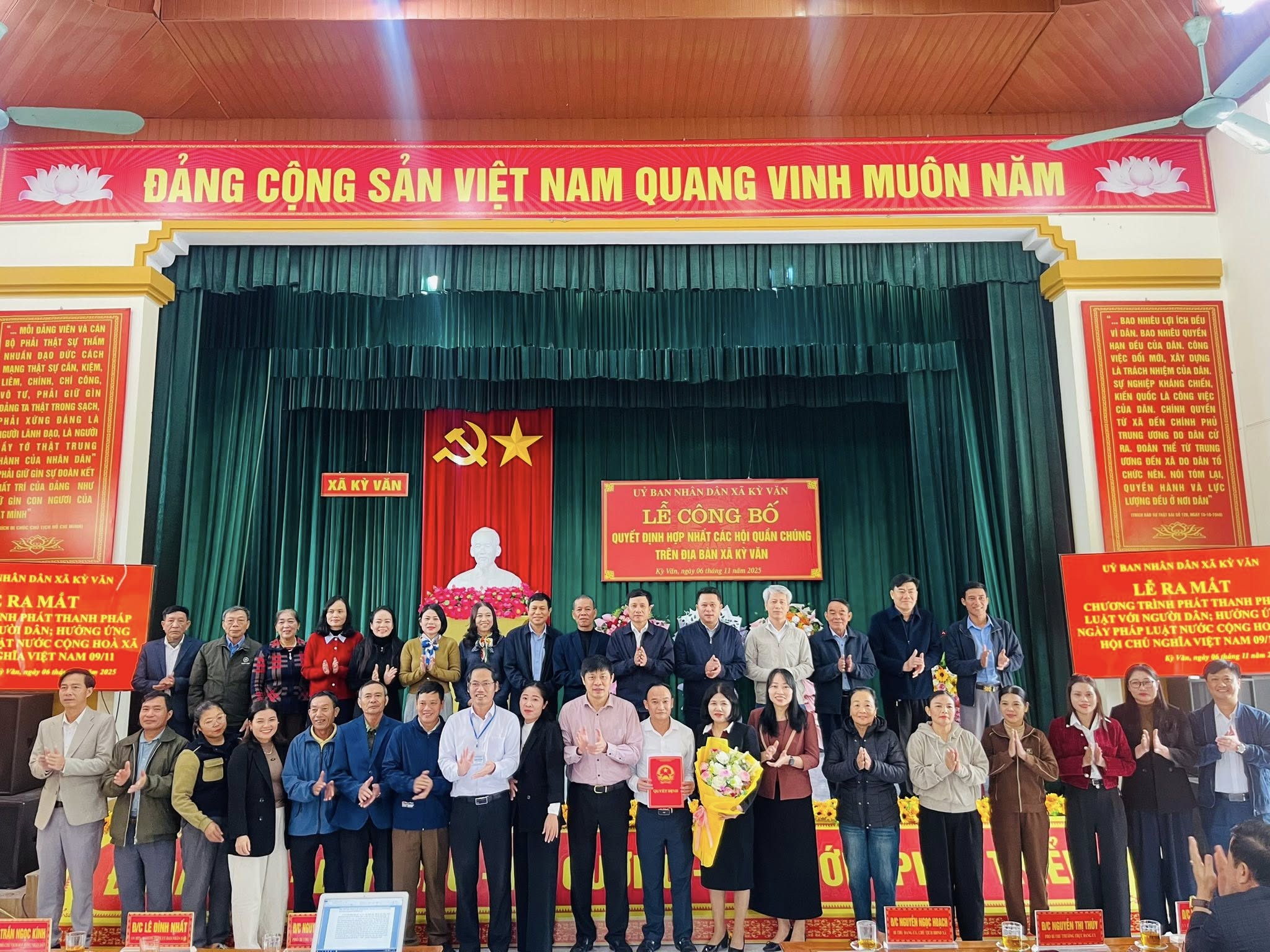 UBND Kỳ Văn long trọng tổ chức Lễ công bố quyết định hợp nhất các hội quần chúng trên địa bàn xã và ra mắt chương trình phát thanh " Pháp luật với người dân"