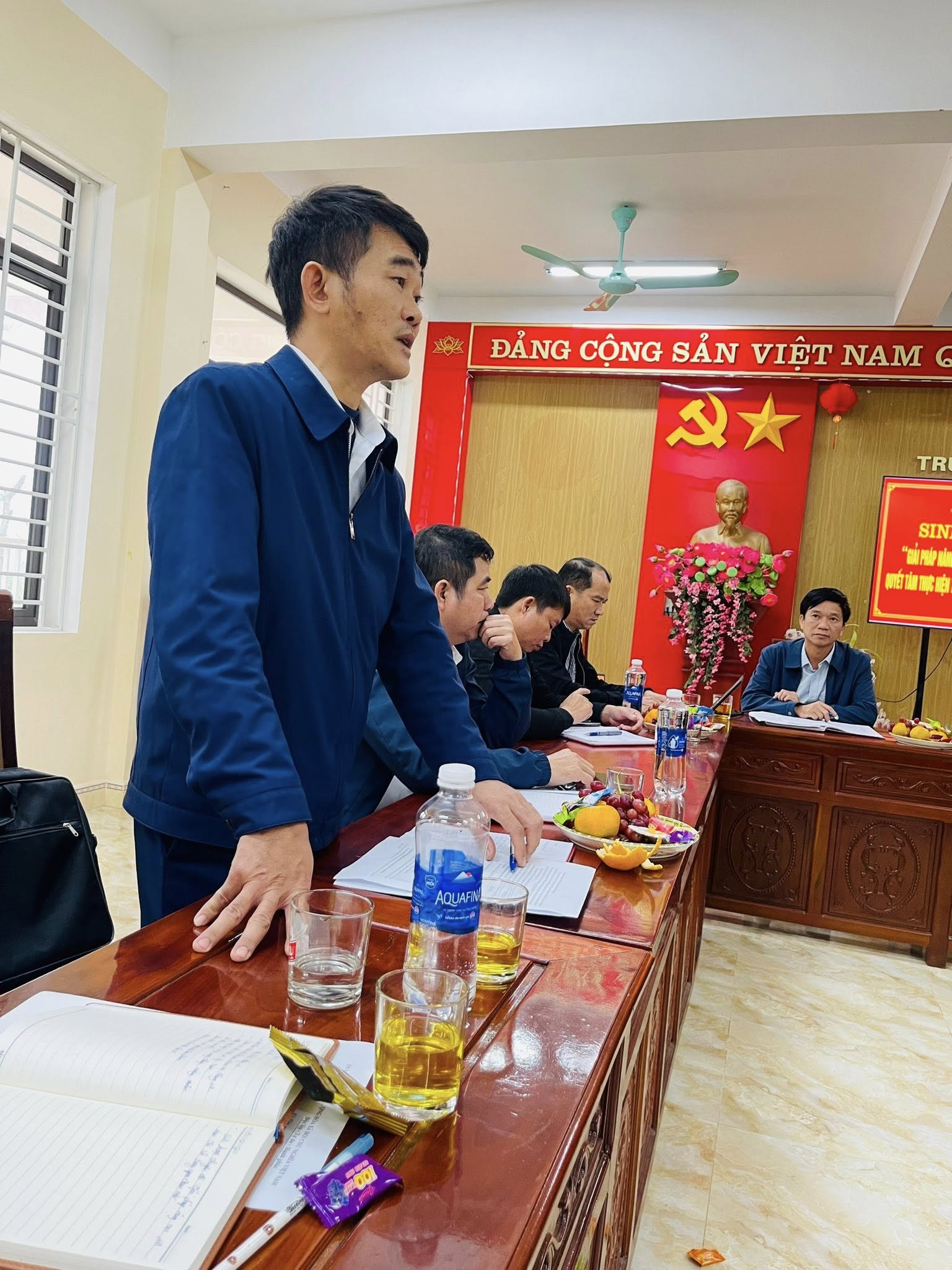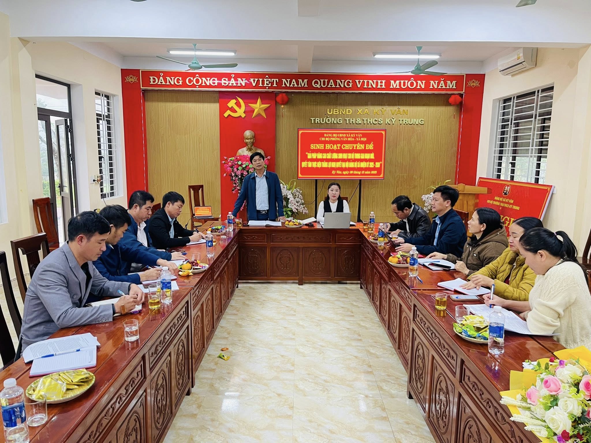 “Giải pháp nâng cao chất lượng sinh hoạt chi bộ trong giai đoạn mới, quyết tâm thực hiện thắng lợi Nghị quyết Đại hội Đảng bộ xã nhiệm kỳ 2025–2030”.