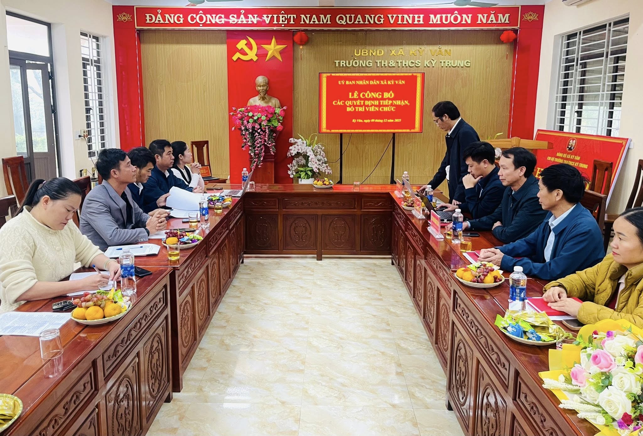 Chiều ngày 9/12/2025, UBND xã Kỳ Văn phối hợp với Phòng Văn hoá – Xã hội tổ chức Lễ công bố các quyết định tiếp nhận và bố trí viên chức về công tác tại UBND xã. Đây là hoạt động có ý nghĩa quan trọng nhằm bổ sung nguồn nhân lực chất lượng, góp phần đáp ứng yêu cầu nhiệm vụ trong giai đoạn mới.