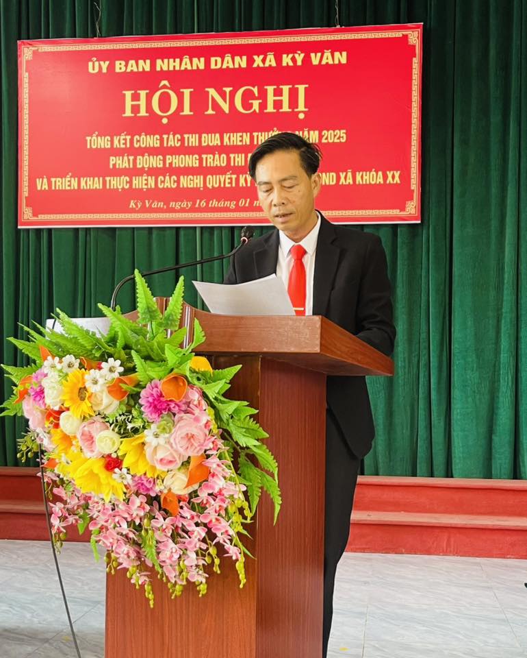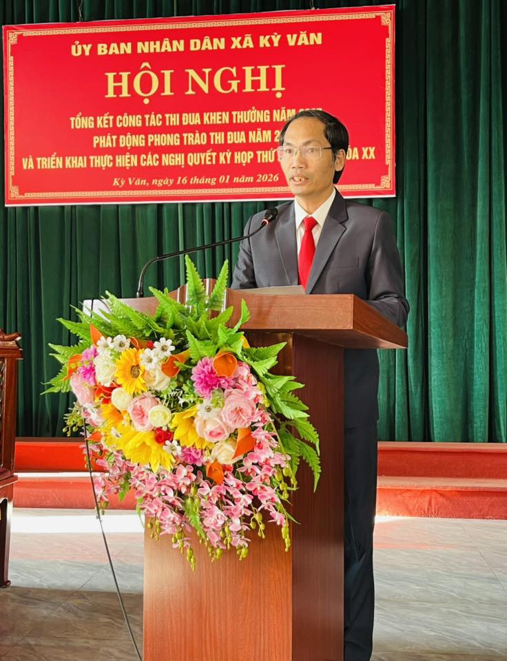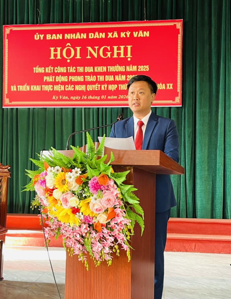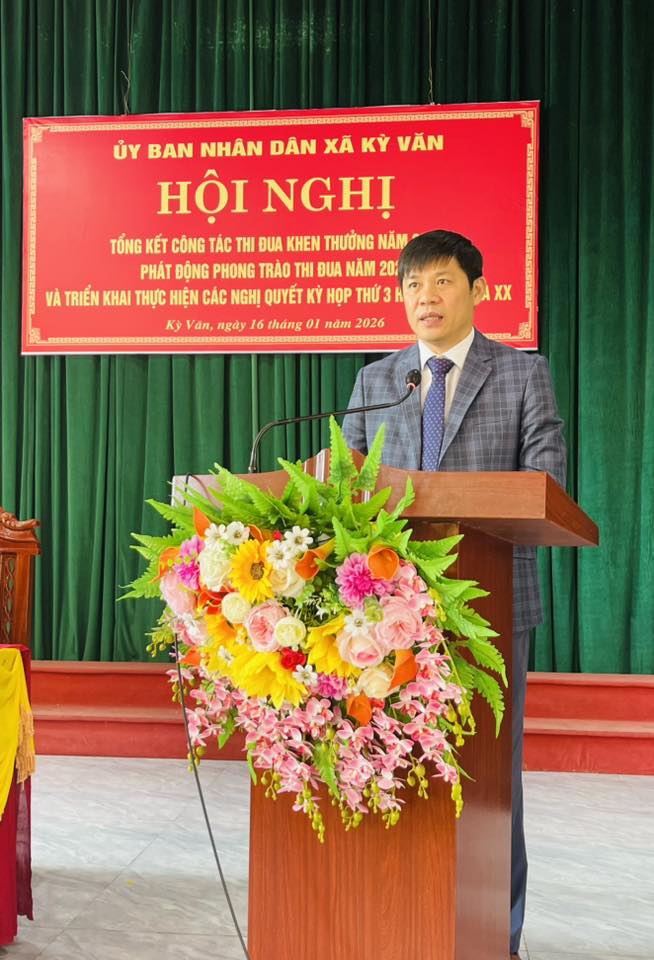 Sáng ngày 16/01/2026, UBND xã Kỳ Văn tổ chức Hội nghị tổng kết phong trào thi đua khen thưởng năm 2025, phát động phong trào thi đua năm 2026 và triển khai thực hiện các Nghị quyết của HĐND xã năm 2026.