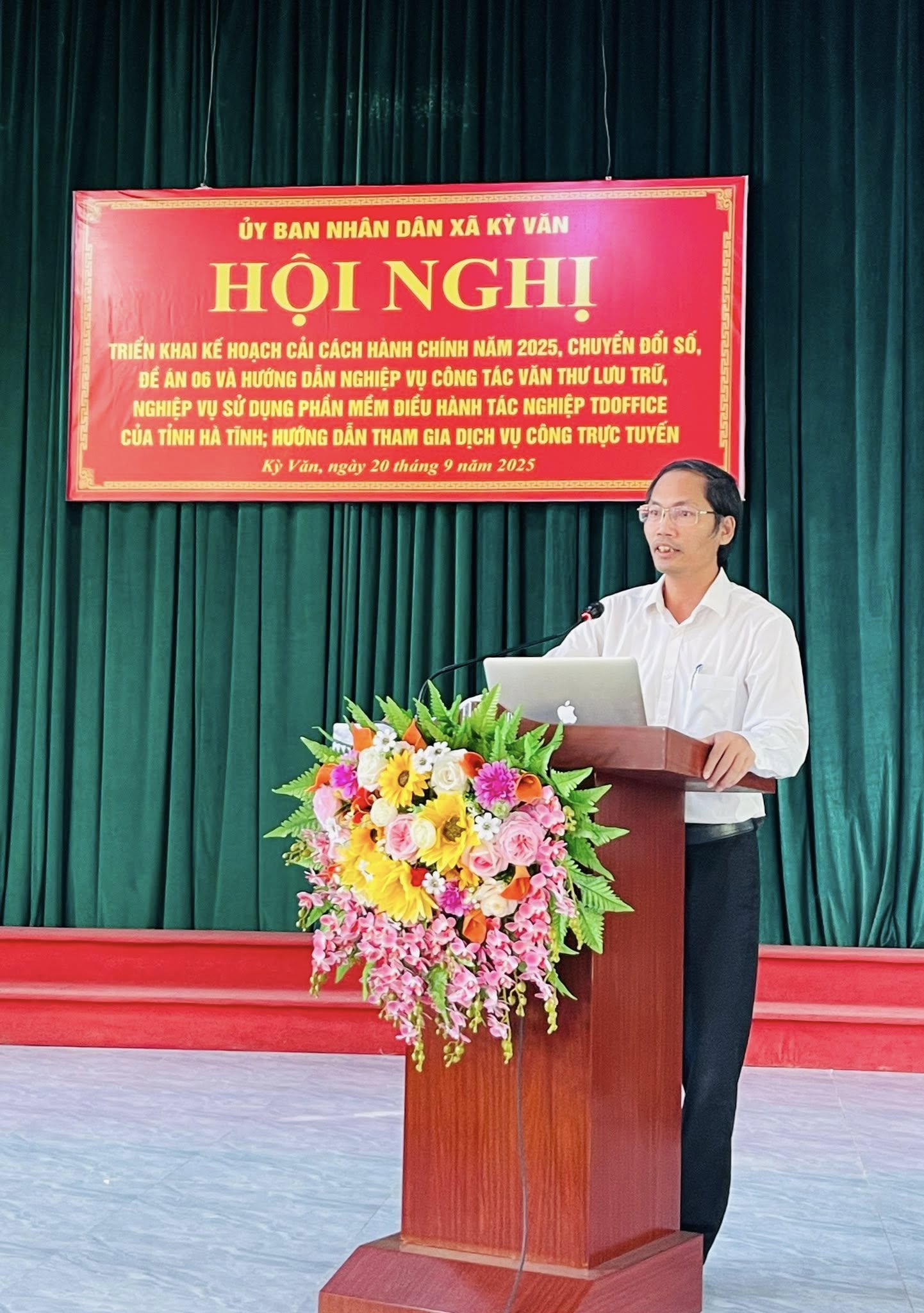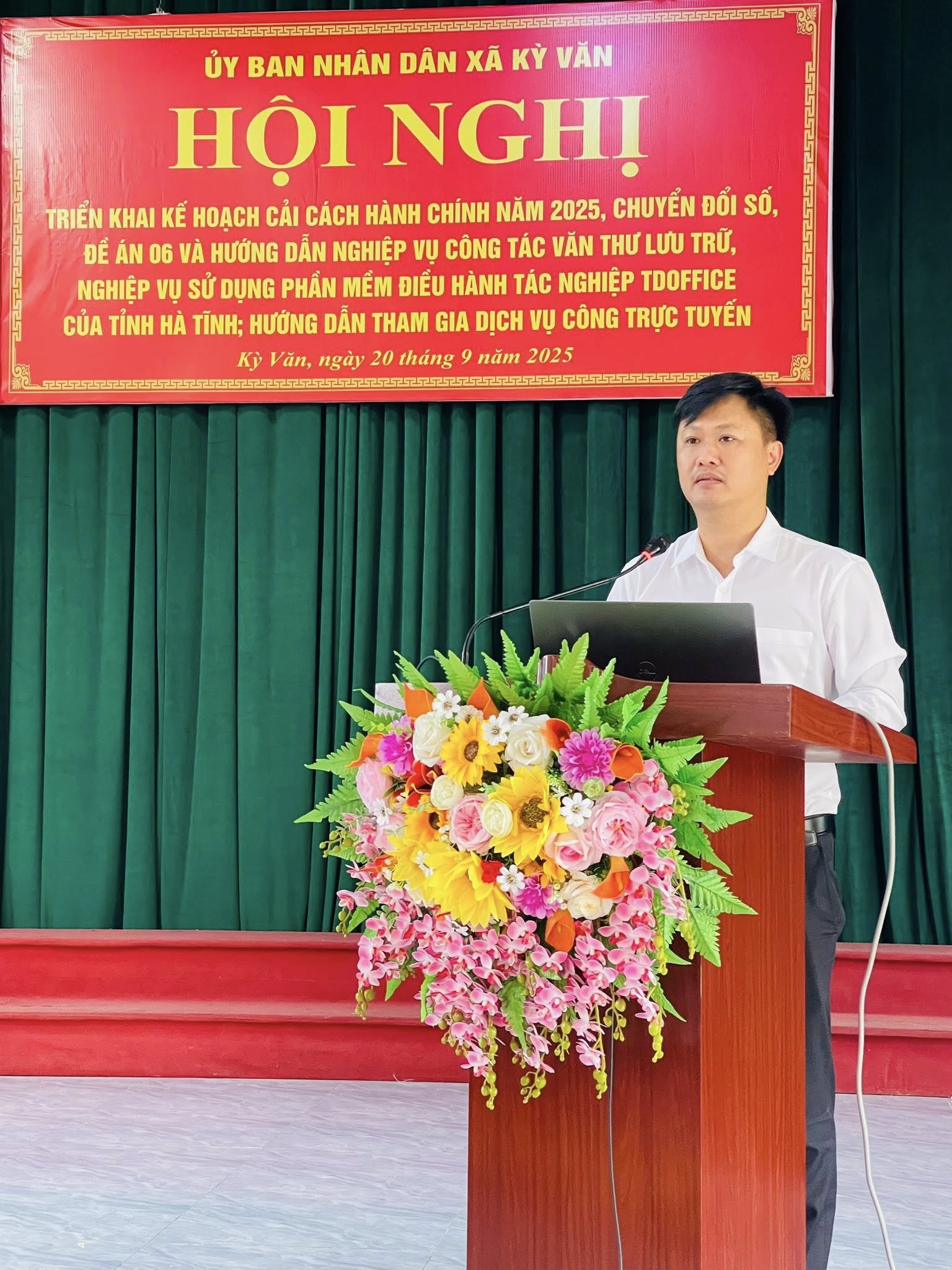 Sáng ngày 20/9/2025, UBND xã Kỳ Văn triển khai Hội nghị triển khai Kế hoạch Cải cách hành chính năm 2025, Chuyển đổi số, Đề án 06 và hướng dẫn nghiệp vụ công tác Văn thư lưu trữ, nghiệp vụ sử dụng phần mềm Điều hành tác nghiệp TDoffice của tỉnh Hà Tĩnh đã được tổ chức trọng thể.