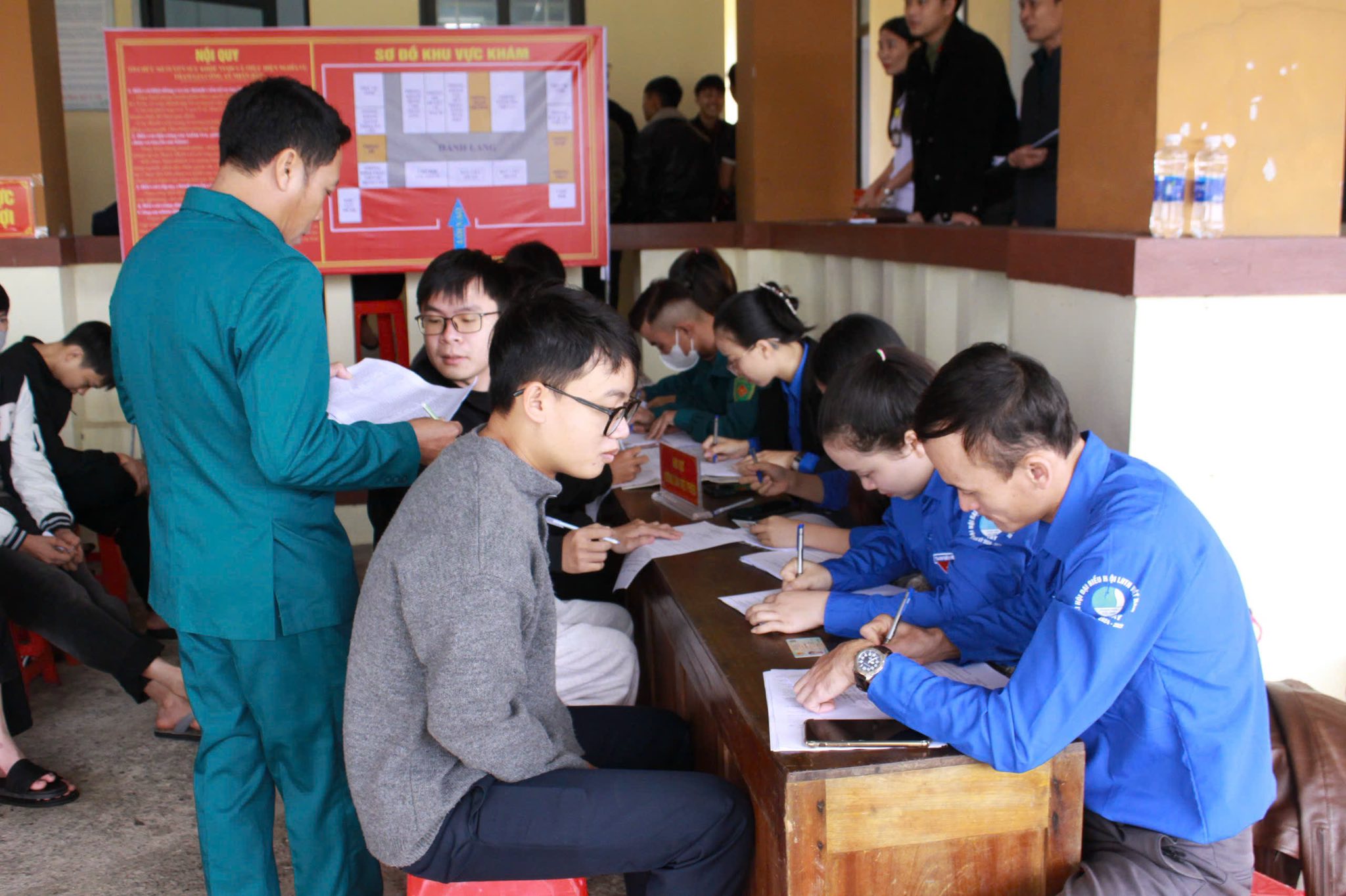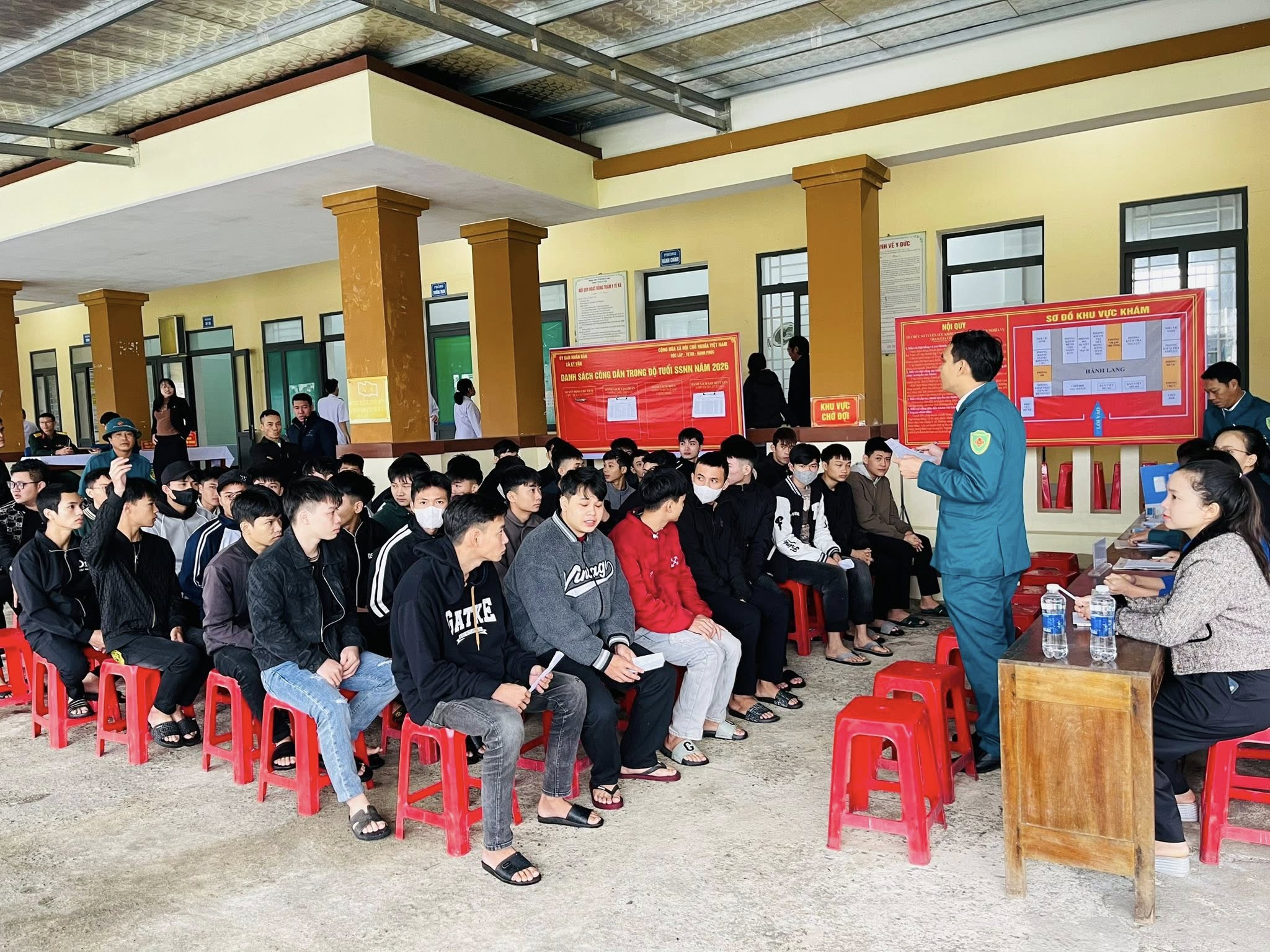 Các thanh niên trong diện sơ tuyển thể hiện tinh thần hăng hái, sẵn sàng lên đường làm nhiệm vụ bảo vệ Tổ quốc, góp phần cùng địa phương quyết tâm thực hiện thắng lợi chỉ tiêu giao quân năm 2025.