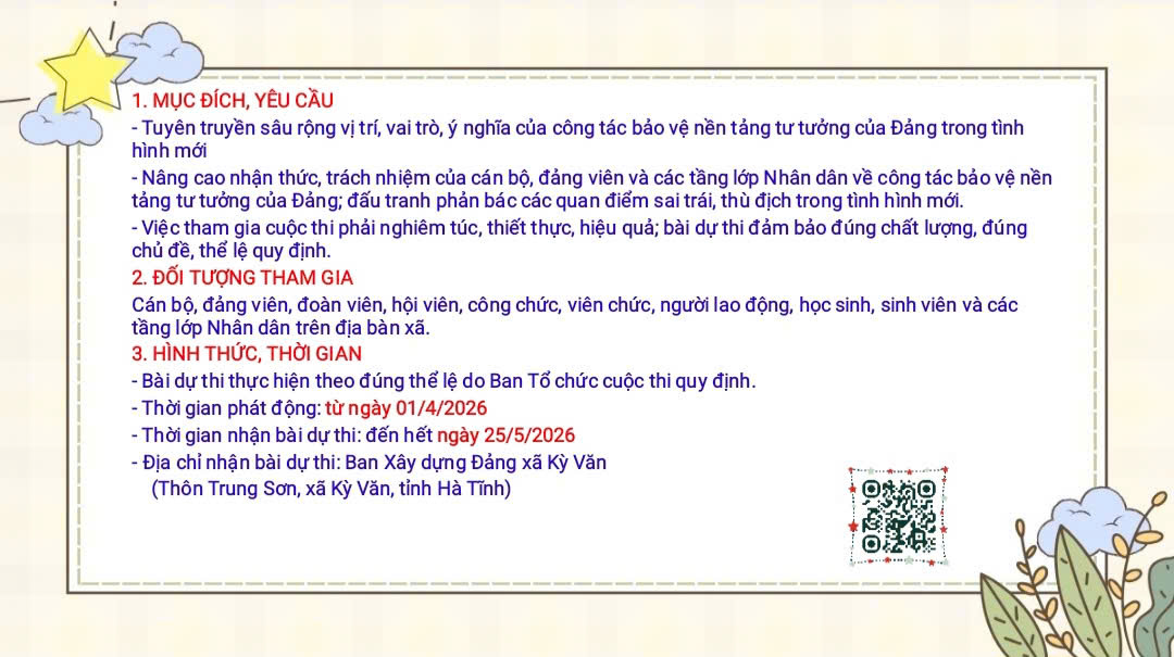 Xã Kỳ Văn triển khai Cuộc thi chính luận về bảo vệ nền tảng tư tưởng của Đảng năm 2026