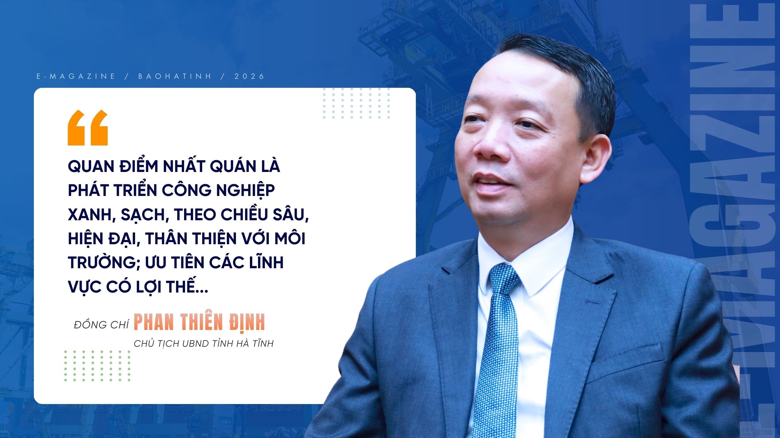 Trong 4 ngành kinh tế trọng điểm, Hà Tĩnh tiếp tục phát triển mạnh công nghiệp, xác định đây là mũi nhọn, giữ vai trò chủ đạo, tạo động lực dẫn dắt tăng trưởng. Quan điểm nhất quán là phát triển công nghiệp xanh, sạch, theo chiều sâu, hiện đại, thân thiện với môi trường; ưu tiên các lĩnh vực có lợi thế, trọng tâm là sản xuất thép, điện, ô tô điện, công nghiệp công nghệ cao, công nghệ xanh, đồng thời thúc đẩy các ngành công nghiệp sau thép. Ðẩy nhanh triển khai các dự án năng lượng trọng điểm như điện khí, điện gió, điện mặt trời, thủy điện, kho khí LNG và năng lượng tái tạo theo Quy hoạch điện VIII, tạo nền tảng tăng trưởng dài hạn.